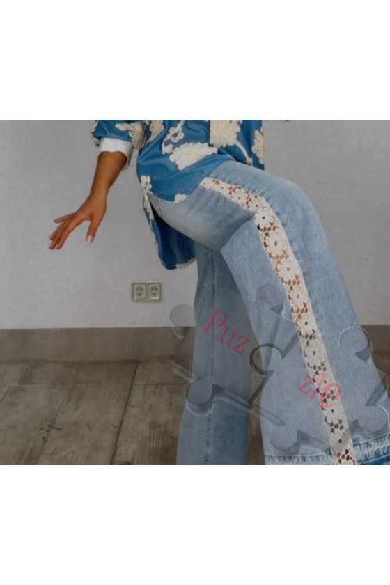 Pantalón tejano con encaje lateral, disponible en tres tallas