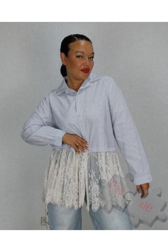 Camisa de rayas con encaje , disponible en talla unica