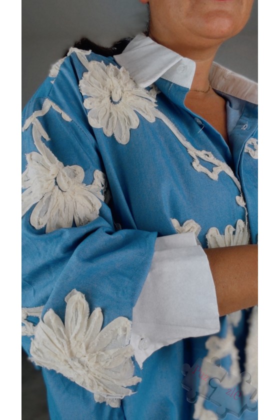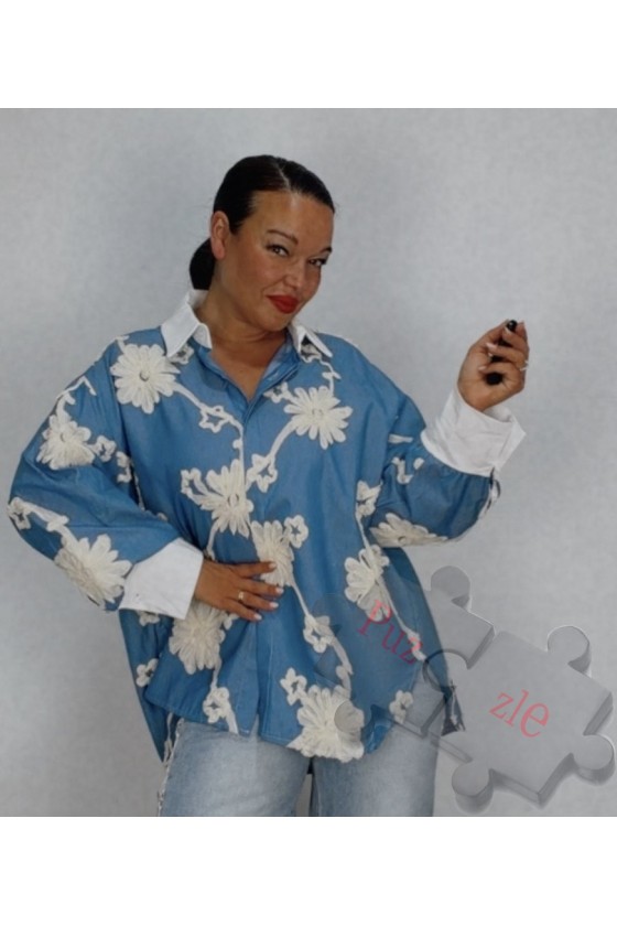 Camisa perforada en tono blanco con tejano , disponible en dos tallas