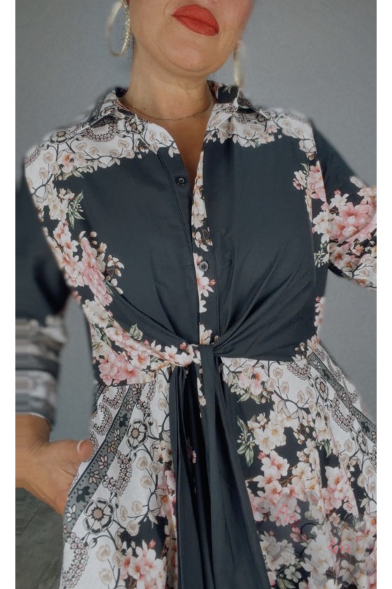 Vestido en tono negro con estampado floral, disponible en talla única