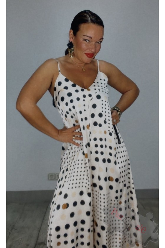 Vestido de punto frío en beig con lunares en blanco , disponible en talla unica