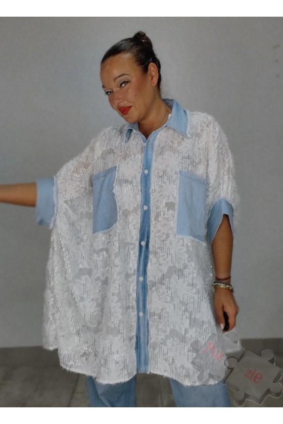 Camisa oversize con detalles de lentejuelas , disponible en talla única