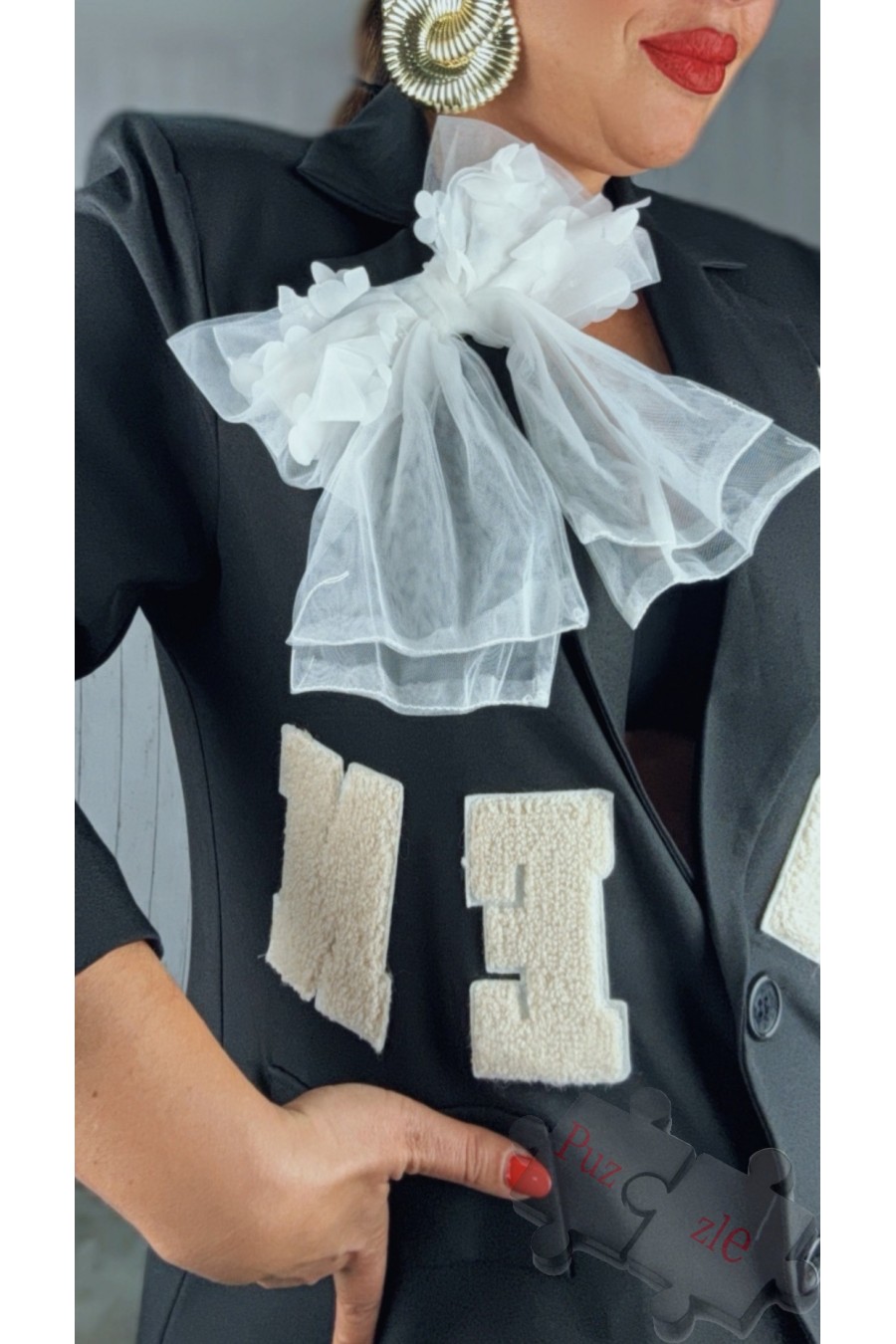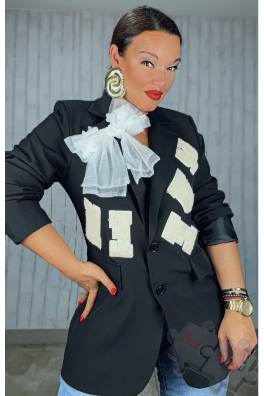 Chaqueta en tono negro con maxi adornos, disponible en talla única