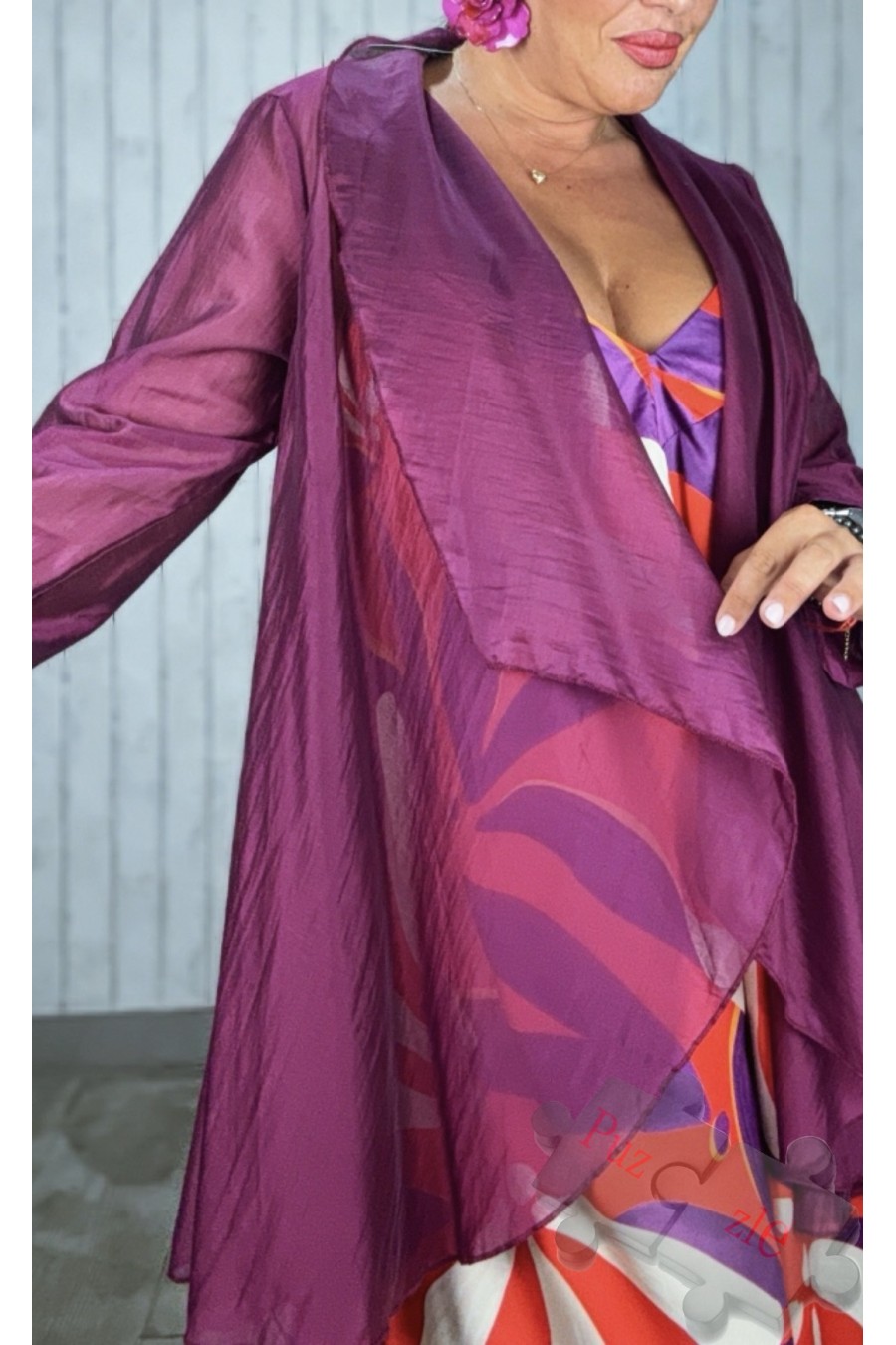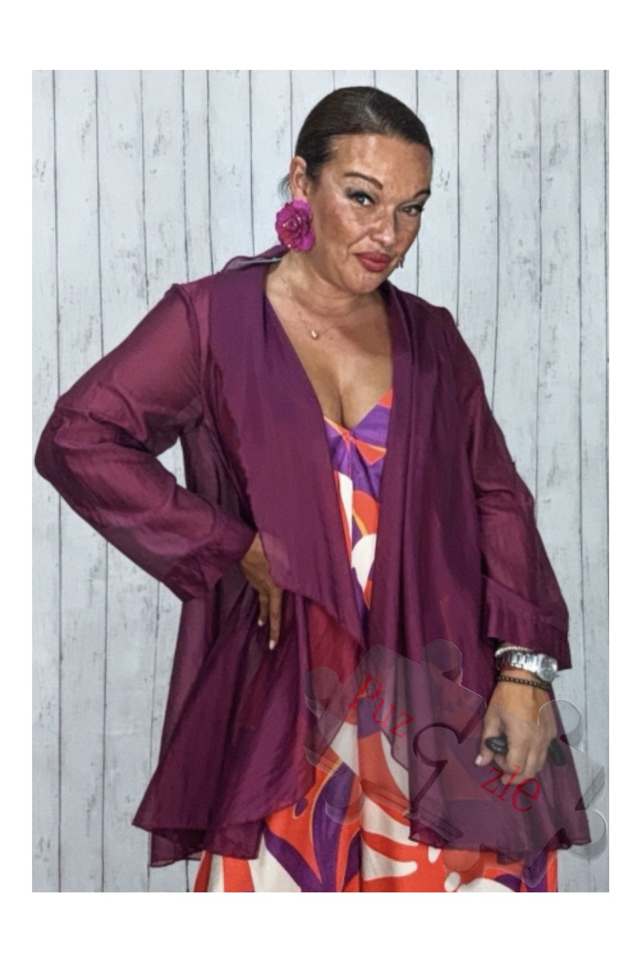 Chaqueta de bambula en tono morado , disponible en talla única , máximo como para talla 40