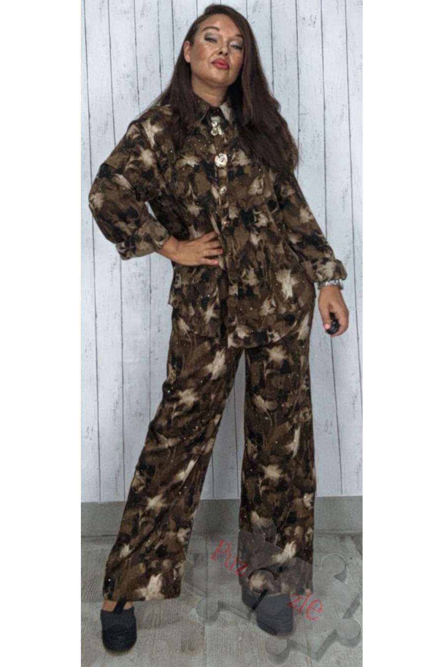 Conjunto de crepé estampado con strass , disponible en dos tallas