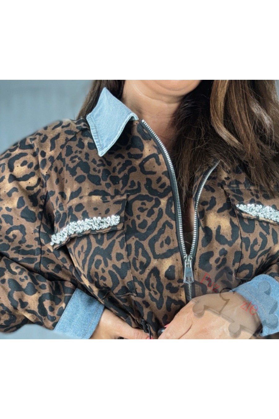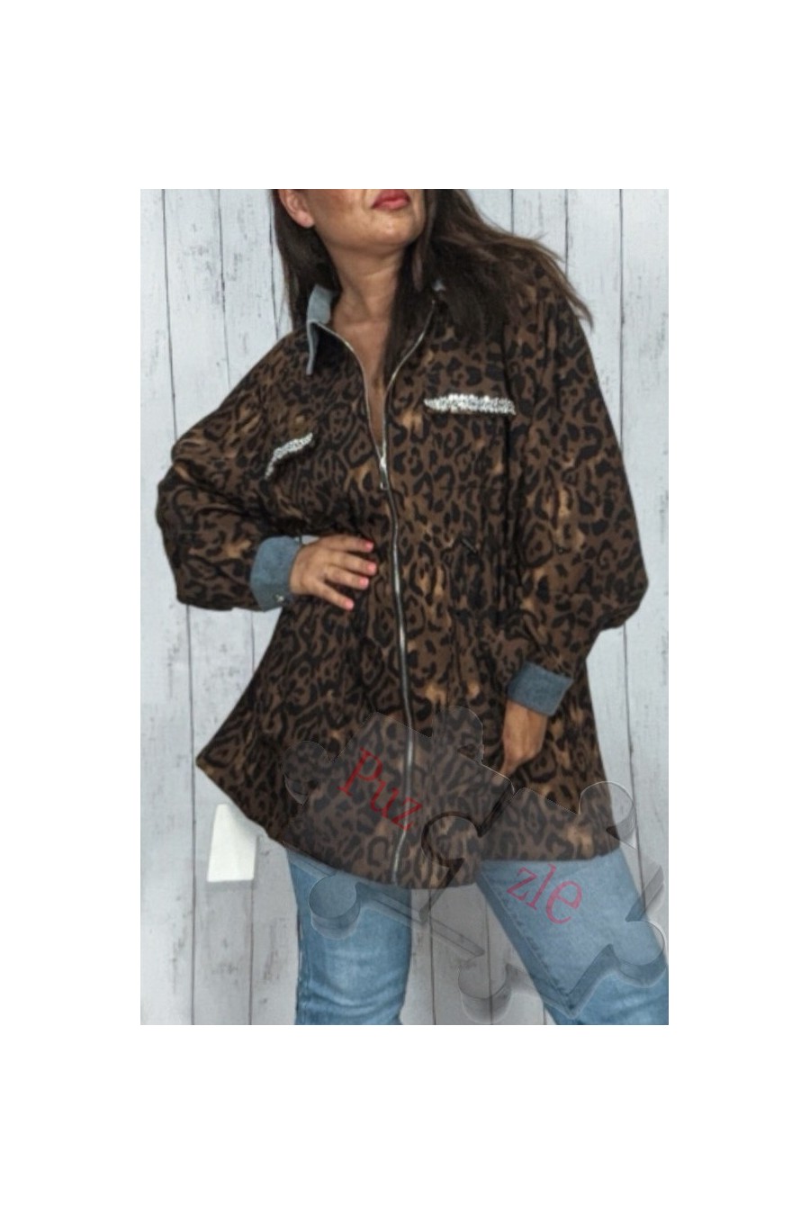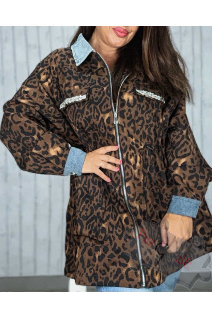 Sobre camisa en leopardo y tejano , disponible en talla única