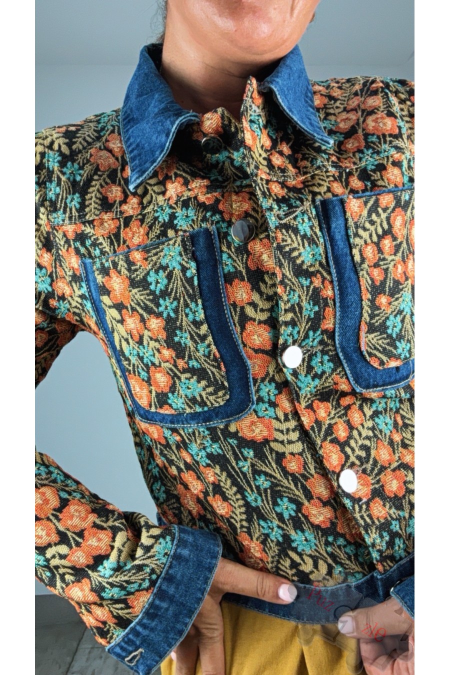 Chaqueta de tejido Tapiz y tejano , disponible en tallas