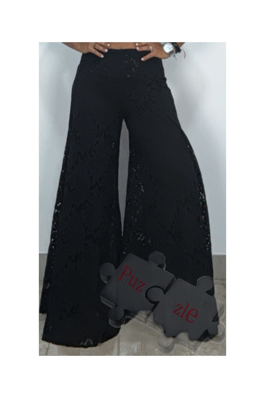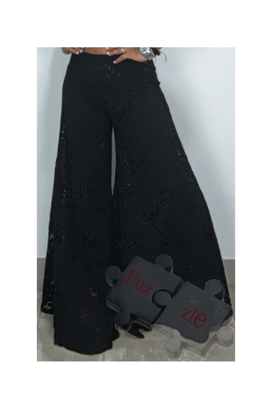Pantalón de encaje en tono negro , disponible en talla única