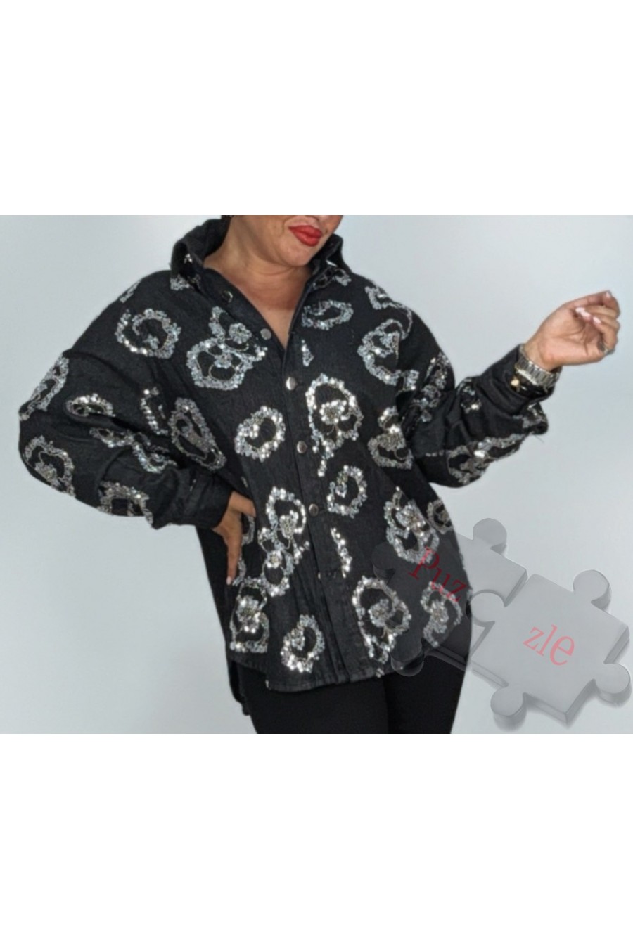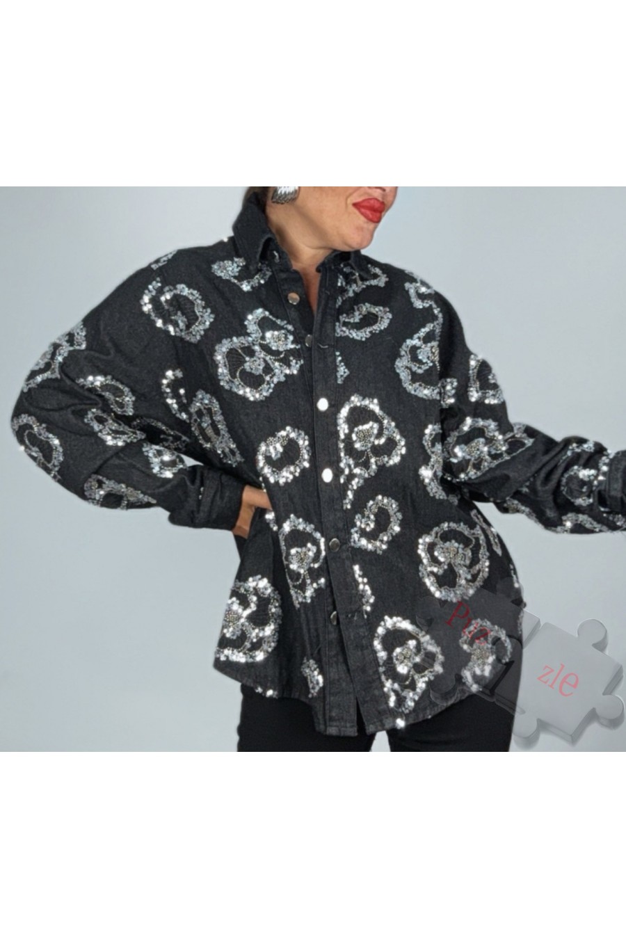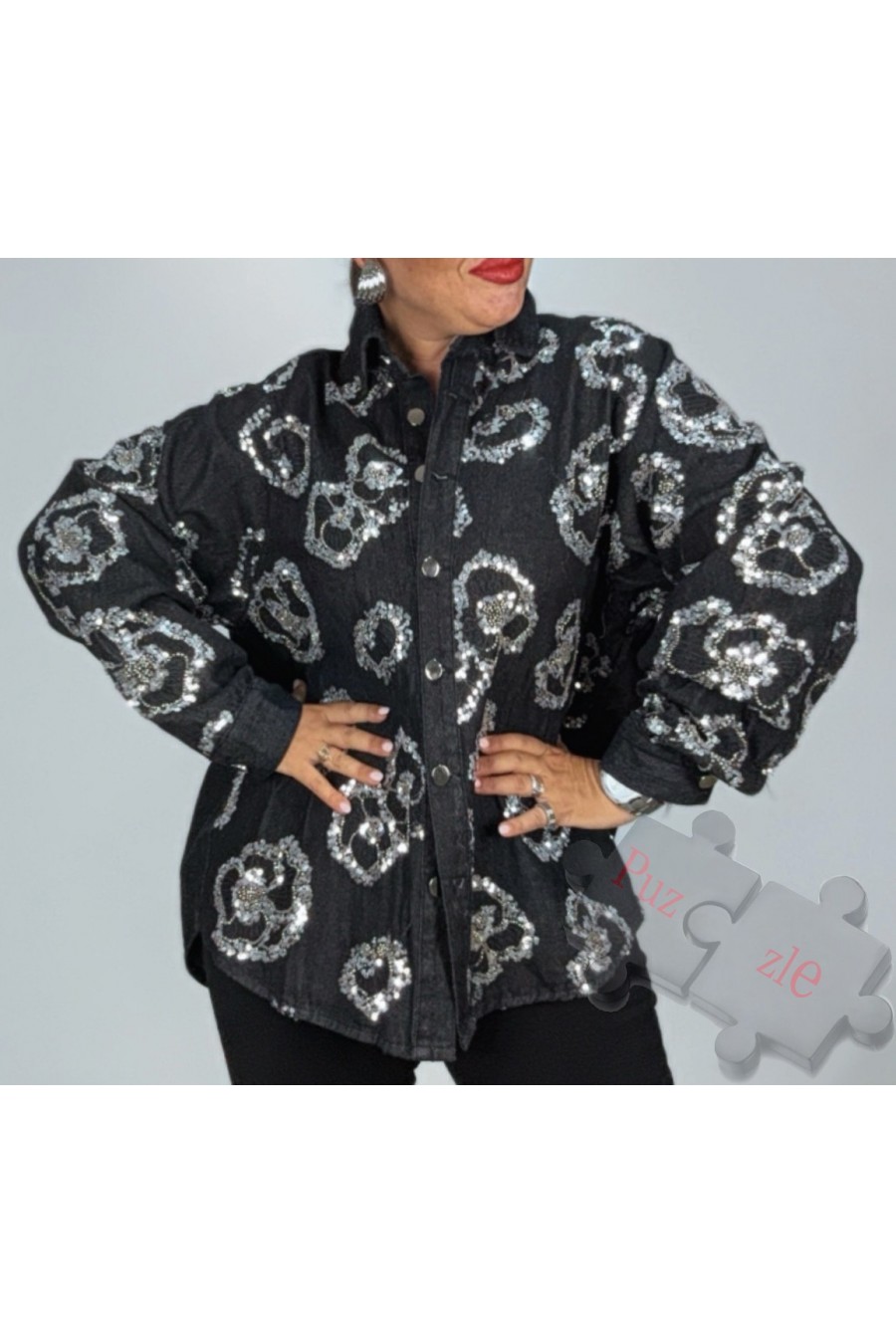Sobrecamisa en tono negro con lentejuelas plateadas , disponible en talla única