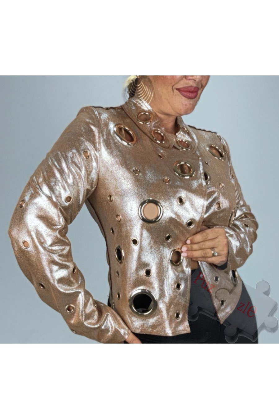 Chaqueta metalizada en tono cobre con arandelas doradas , disponible en tallas