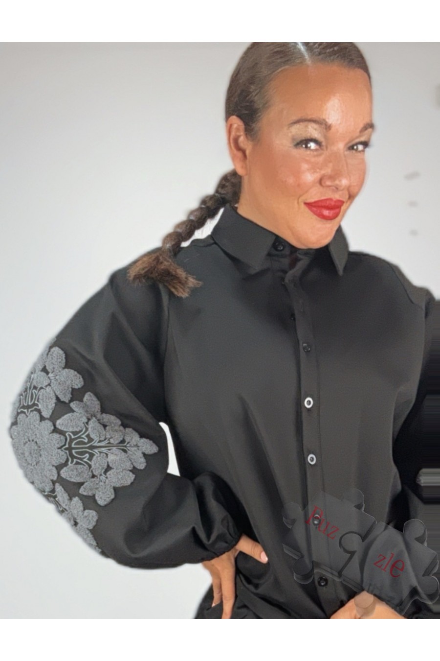 Chaqueta en negro con bordados en bronce, disponible en dos tallas