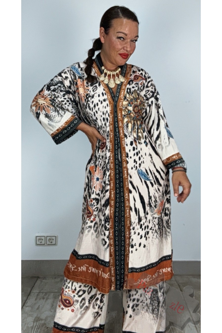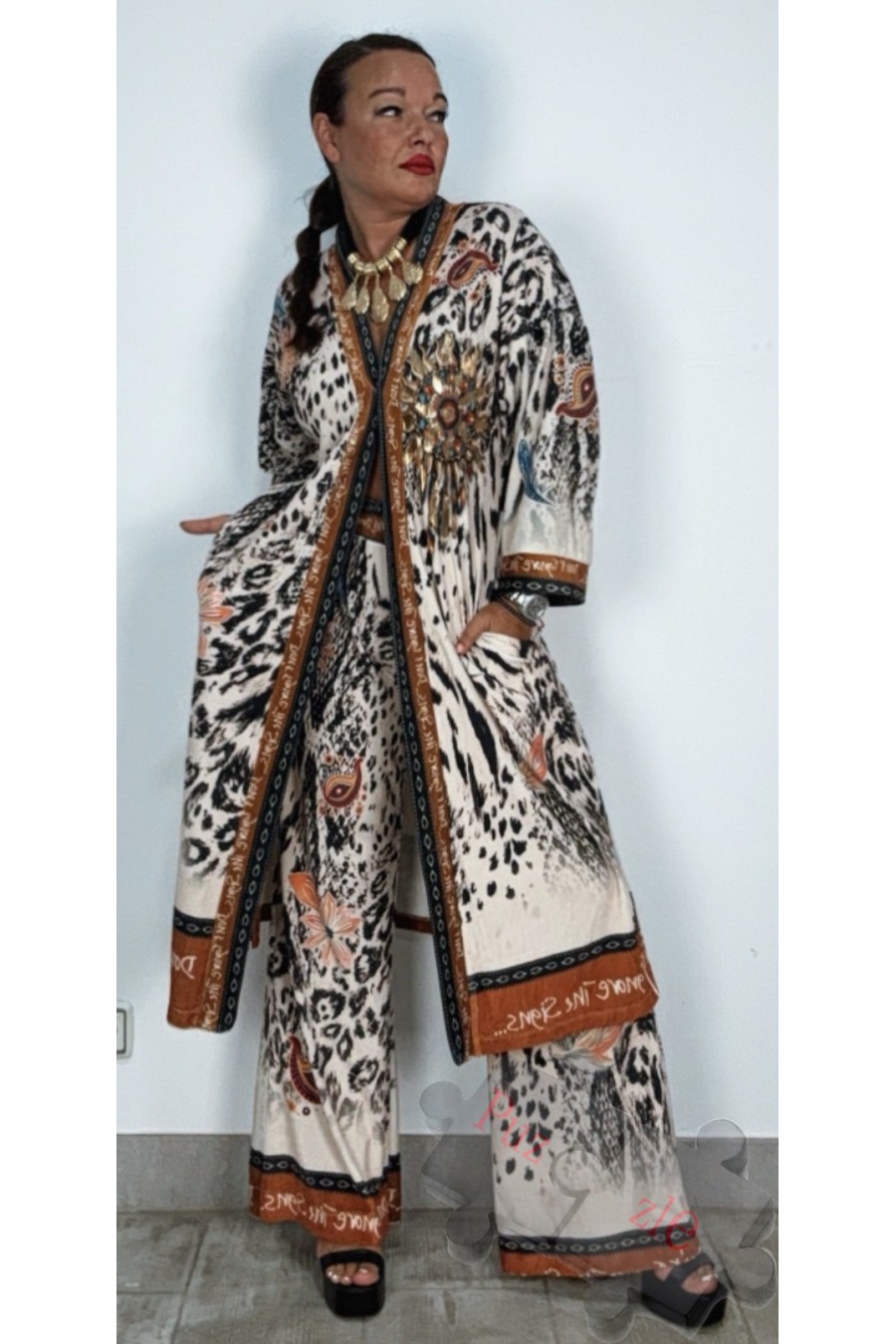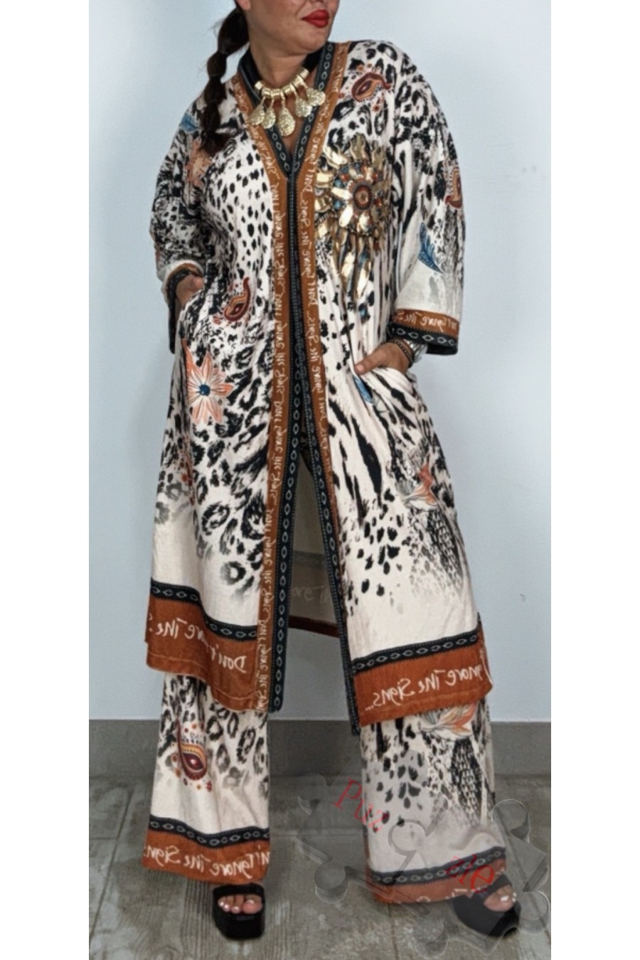 Medidas: kimono contorno 110cm cerrado , cadera 120cm cerrado y largo 1.09