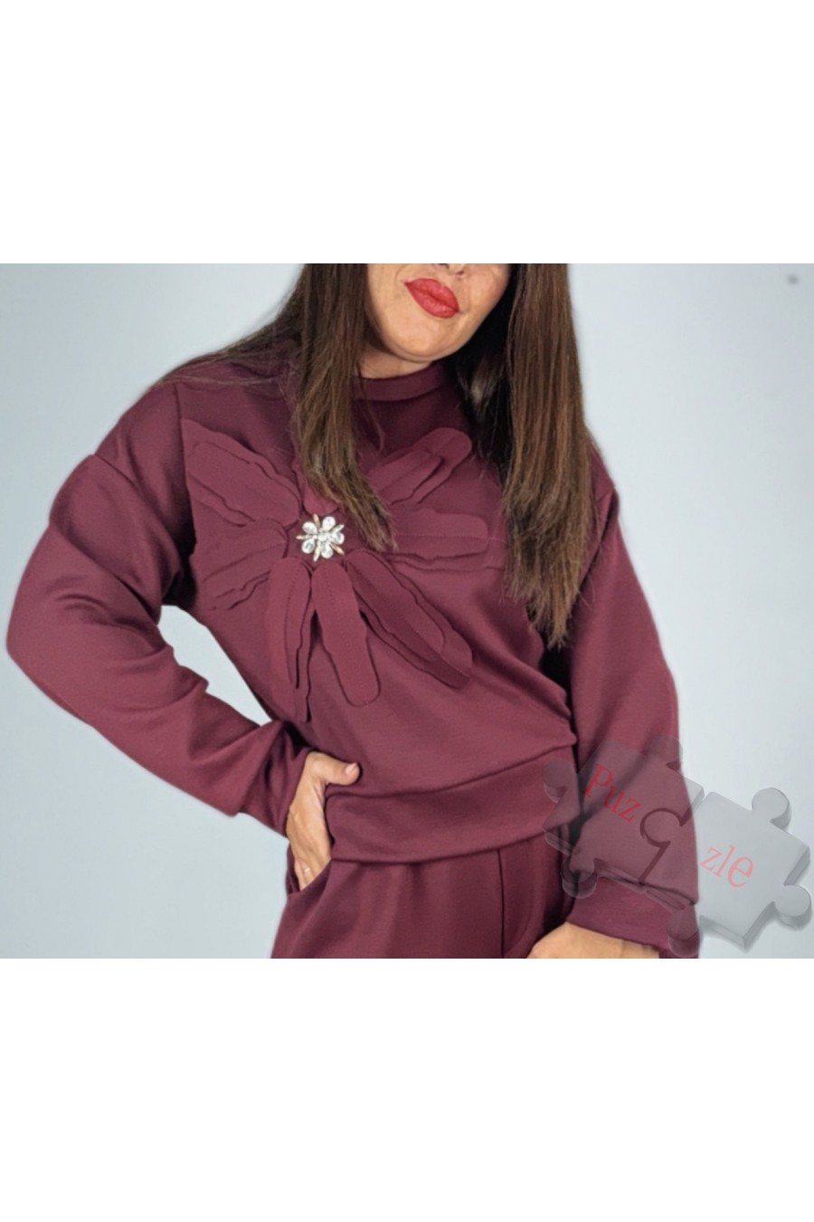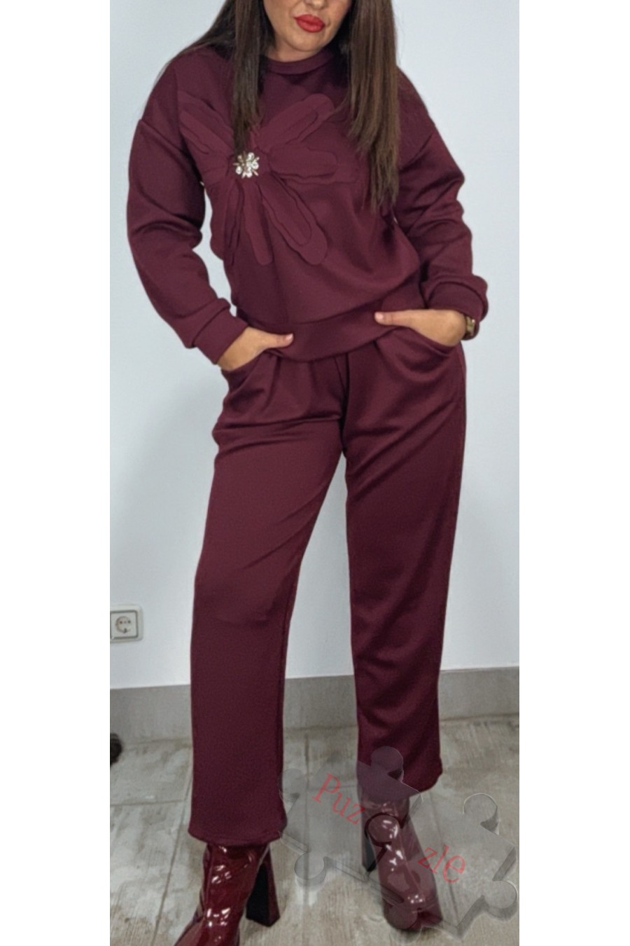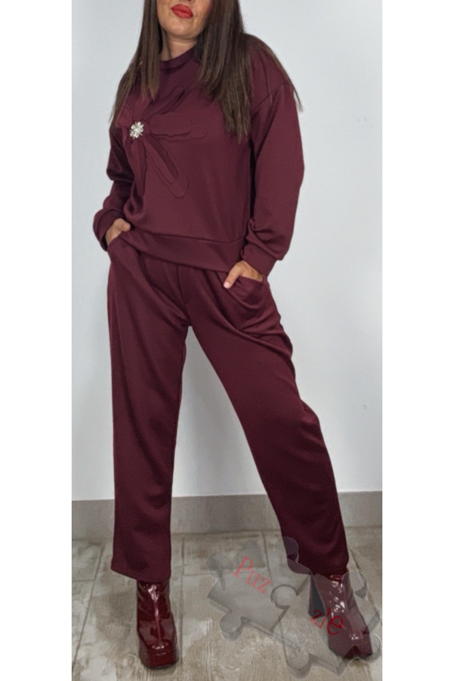 Conjunto de punto en tono granate de pantalón y sudadera , disponible en talla única
