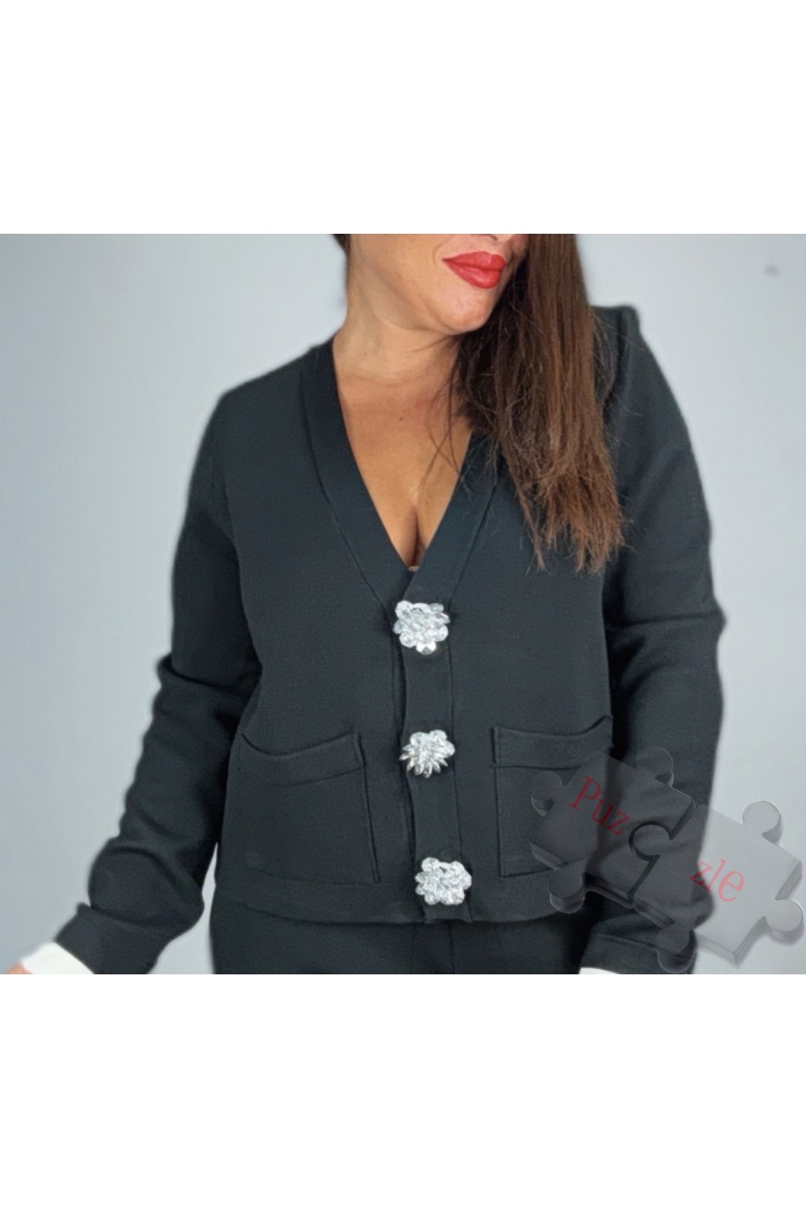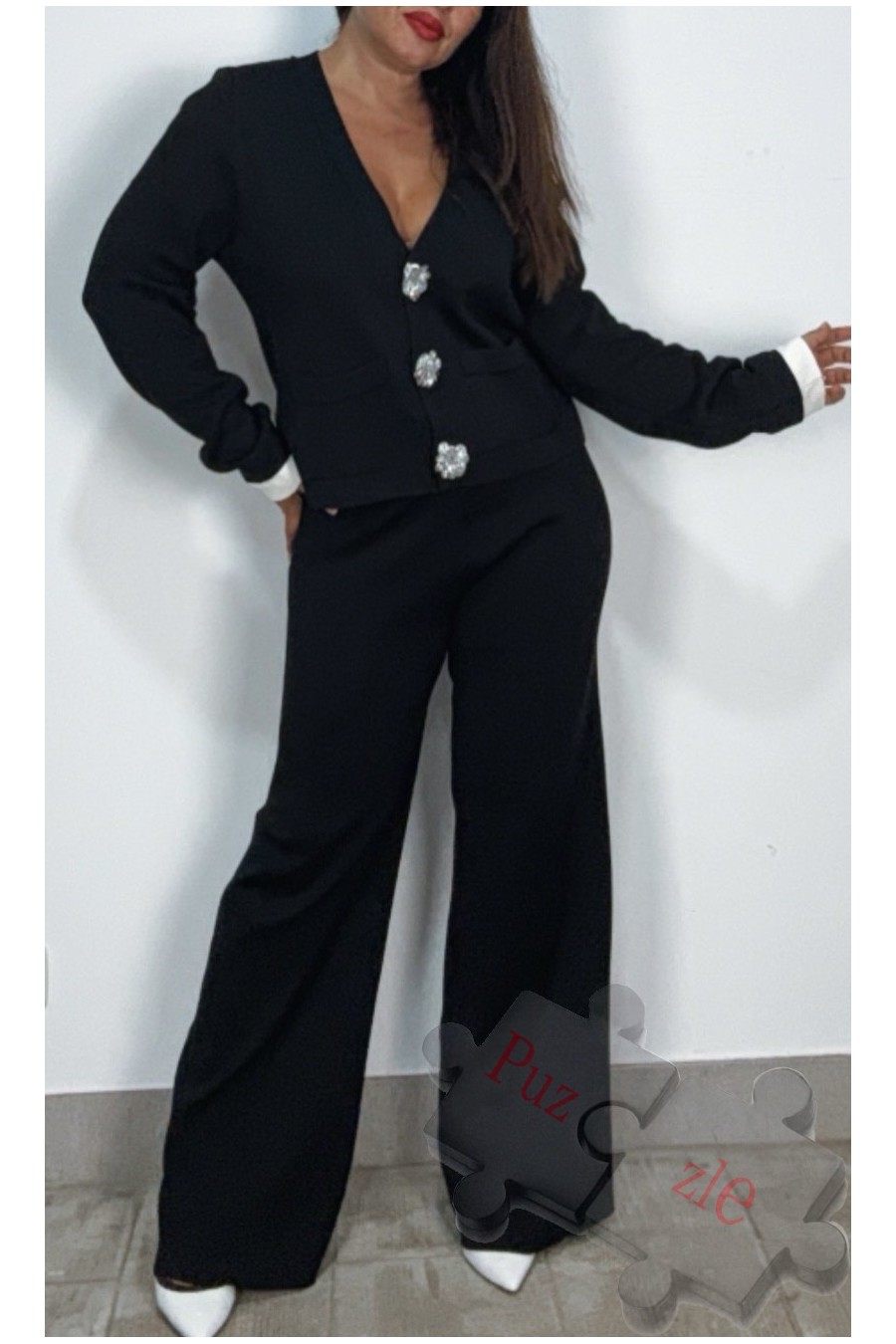 Conjunto de punto en tono negro con adorno en botones, disponible en talla unica
