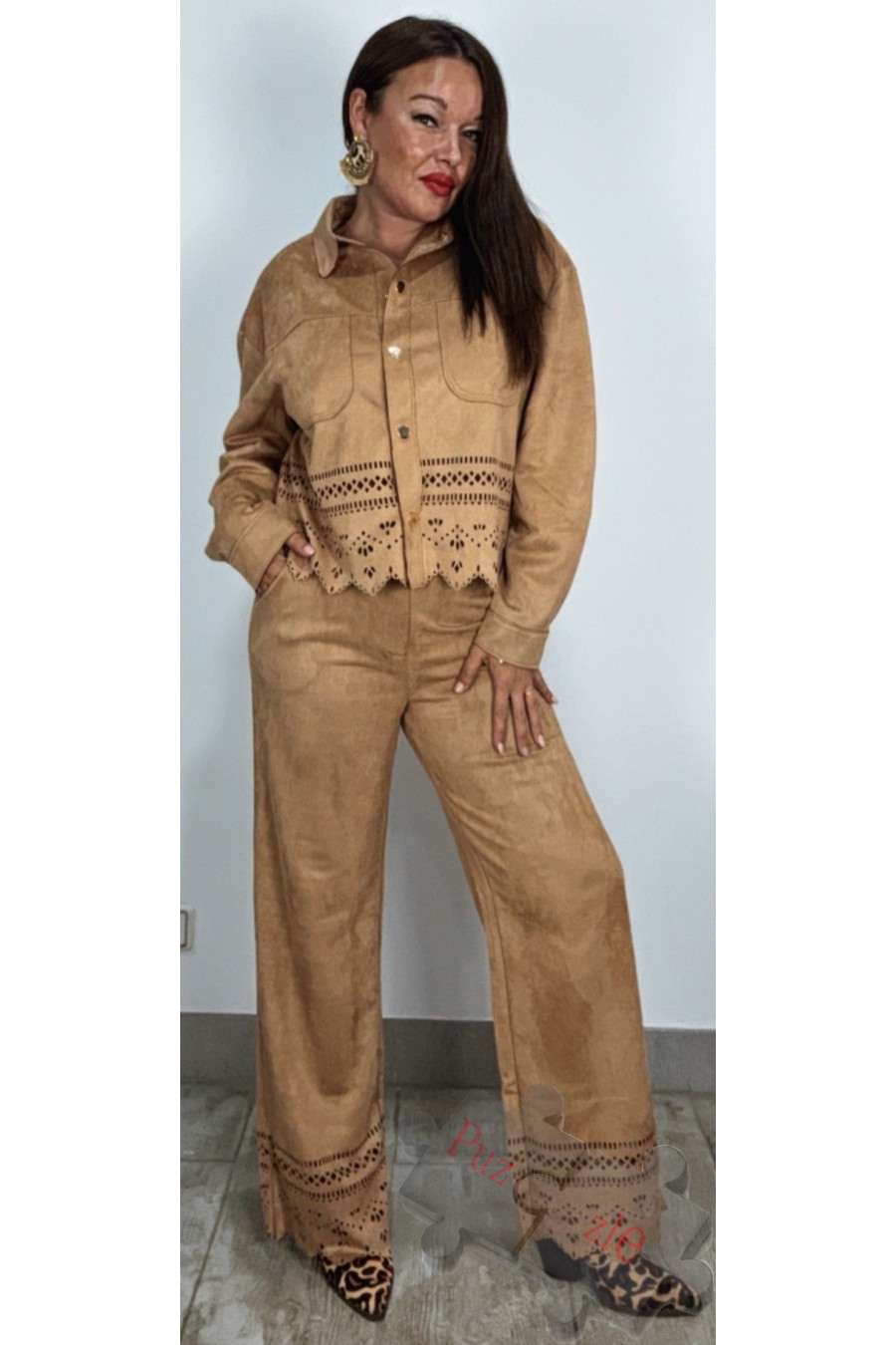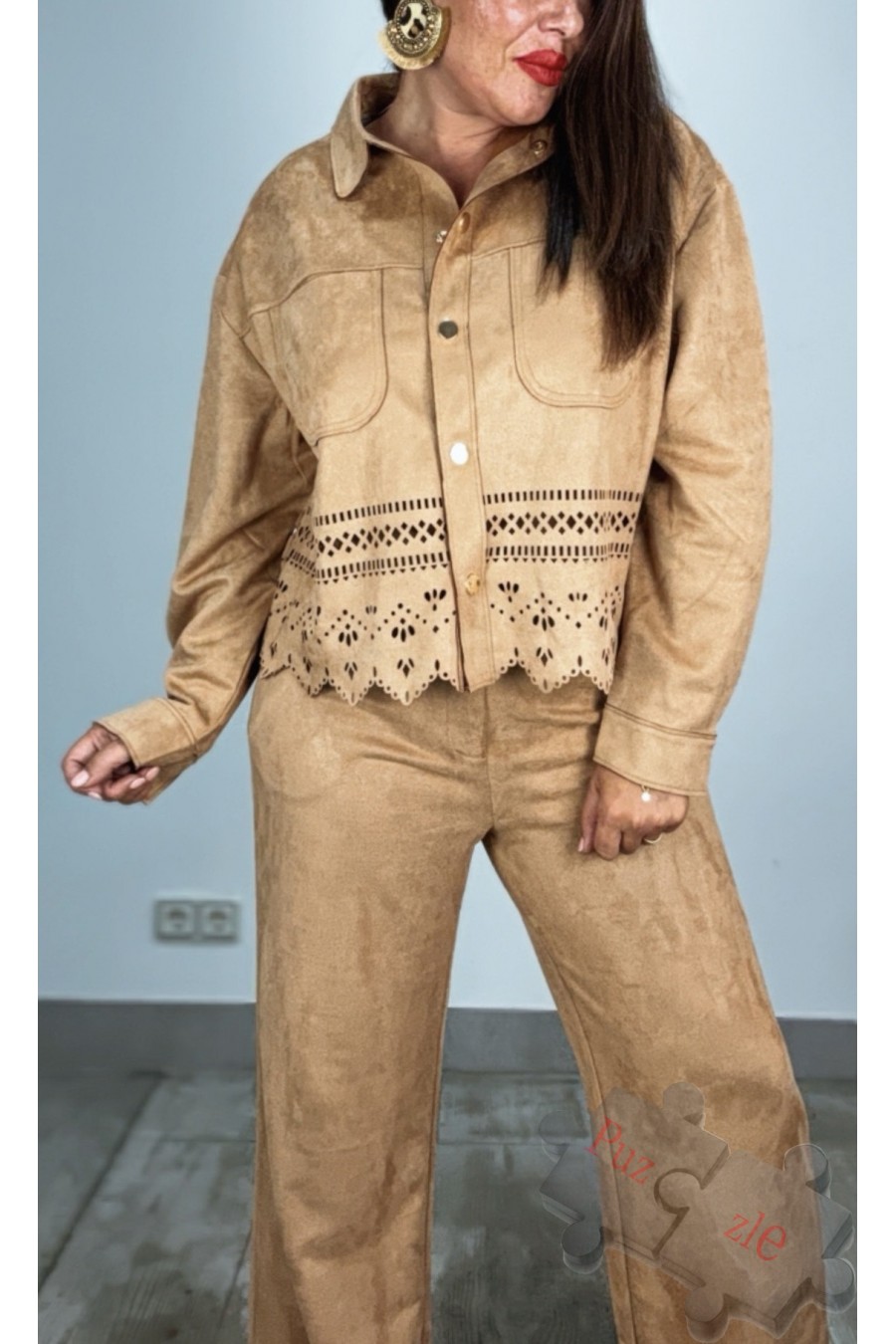 Conjunto de antelina en tono camel , disponible en dos tallas