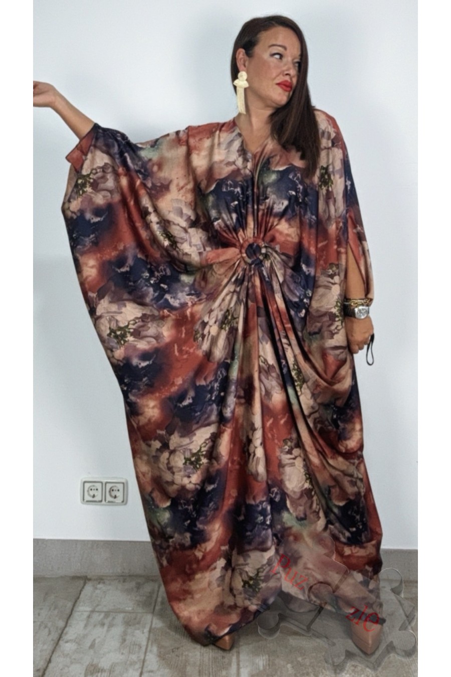 Mono en satén en tonos malvas y rojos , disponible en talla única