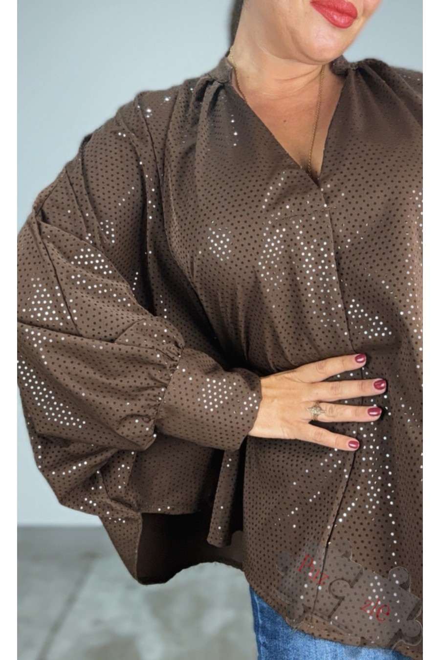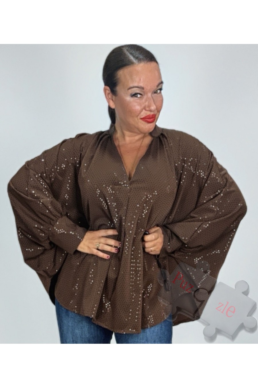 Camiseta en tono marrón con tachas doradas , disponible en talla única
