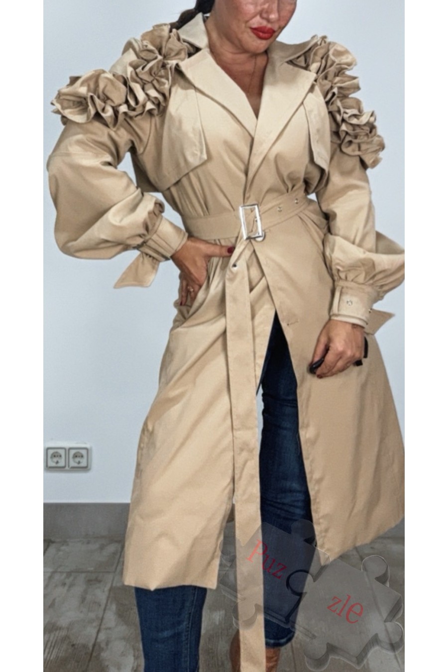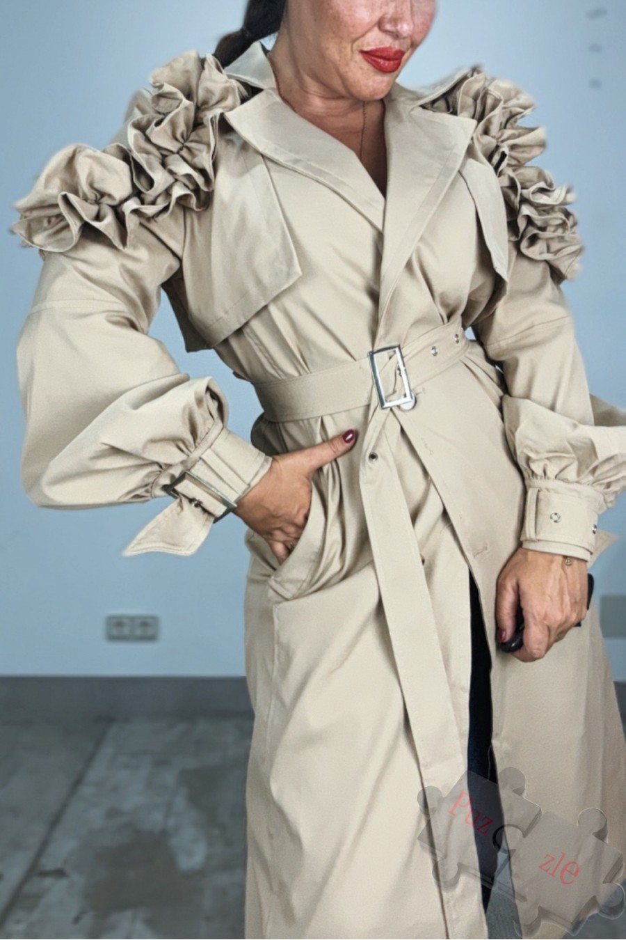 Gabardina con detalles de volantes en hombros , disponible en talla única