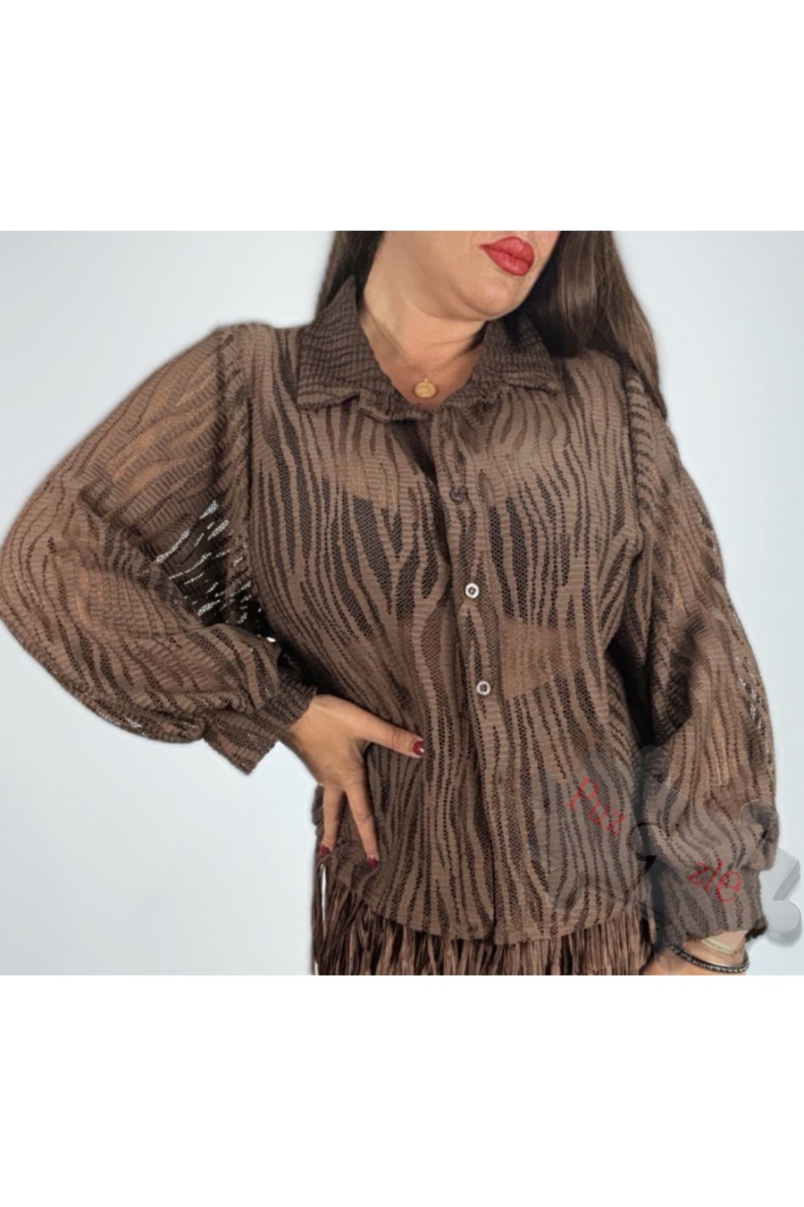 Chaqueta en tono marrón con destellos en negro , disponible en dos tallas