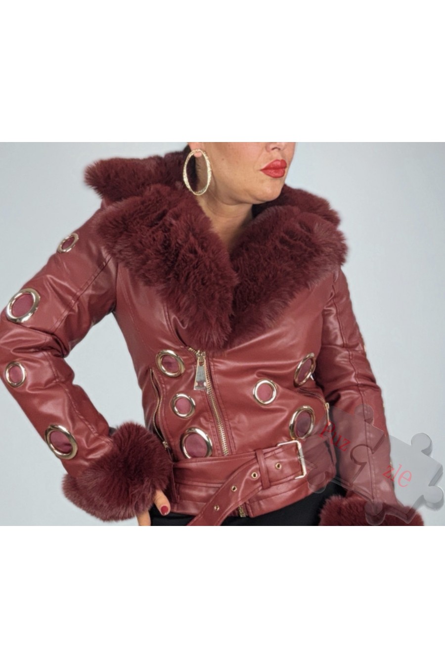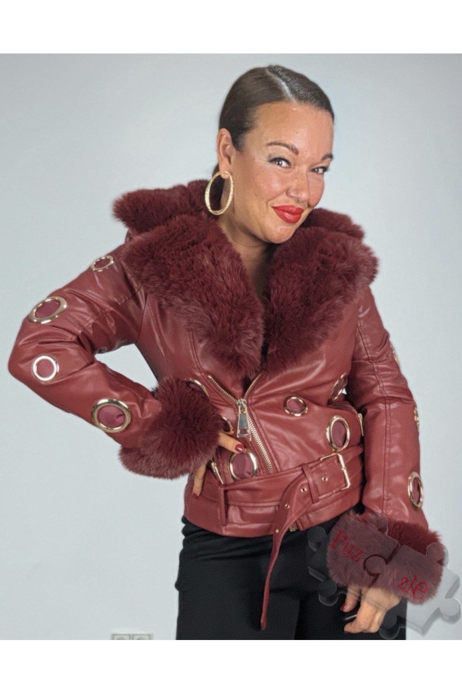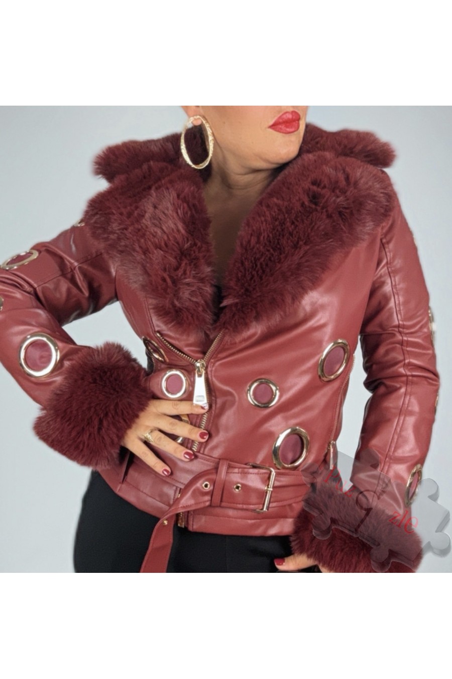 Chaqueta de polipiel con arandelas y pelo por dentro , disponible en tallas