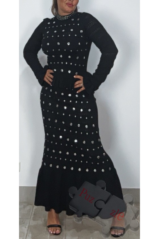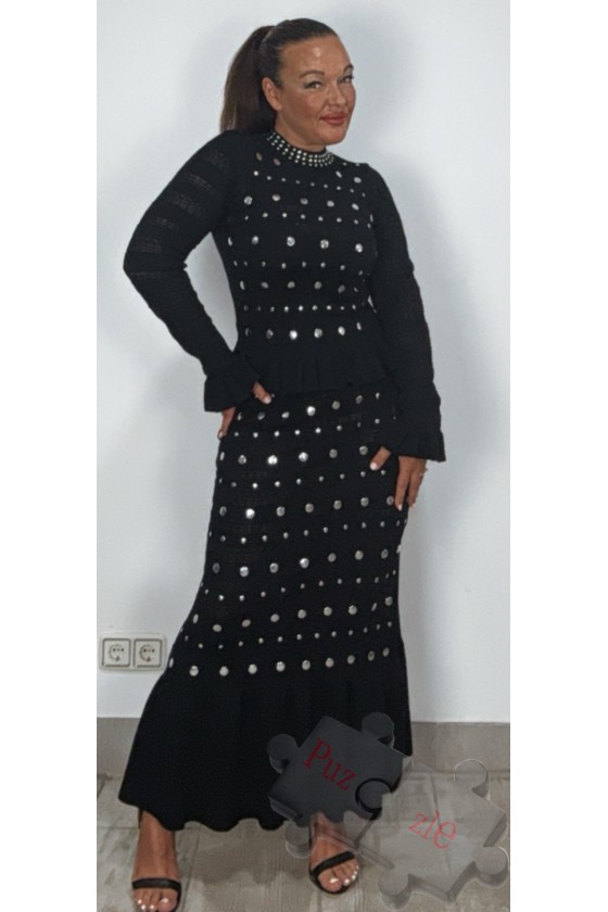 Conjunto de punto en tono negro con tachas , disponible en talla única , la talla oscila desde la talla 36 a 40 maximo