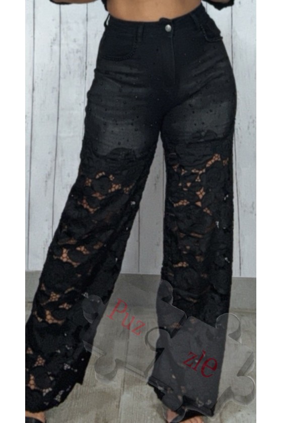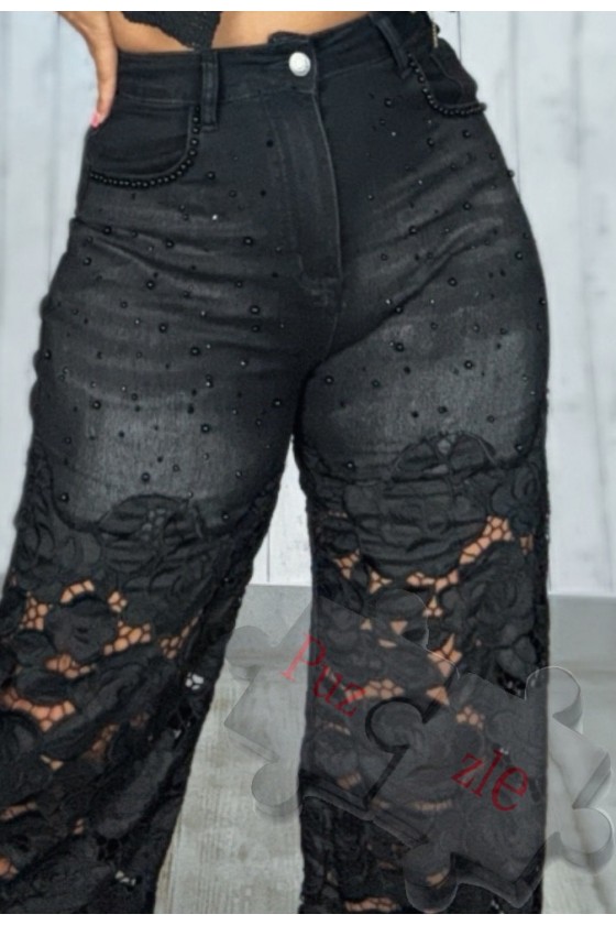 Pantalón tejano globo en tono gris desgastado con strass lateral , disponible en tallas