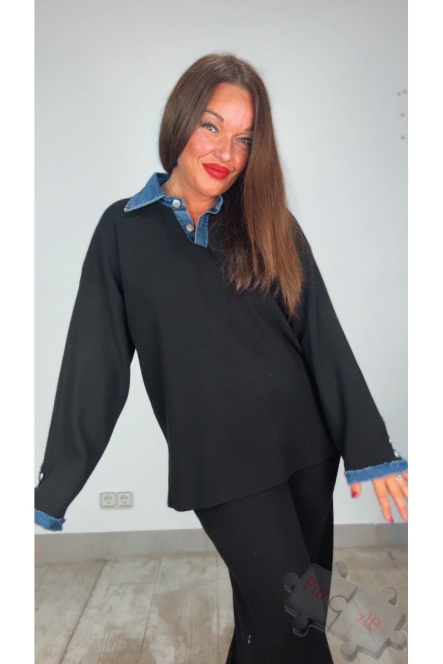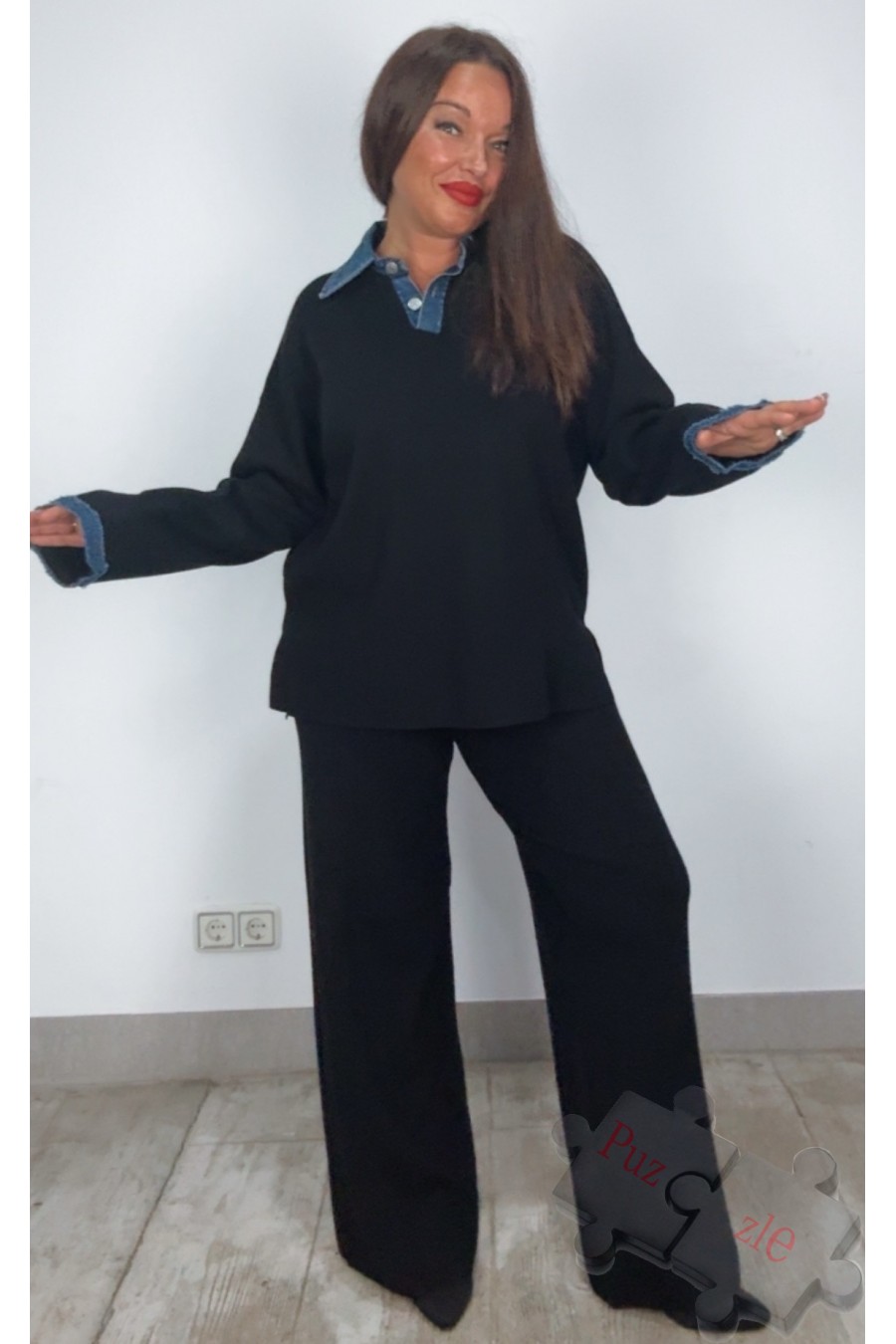 conjunto de punto en tono negro con filos en tejano , disponible en talla única