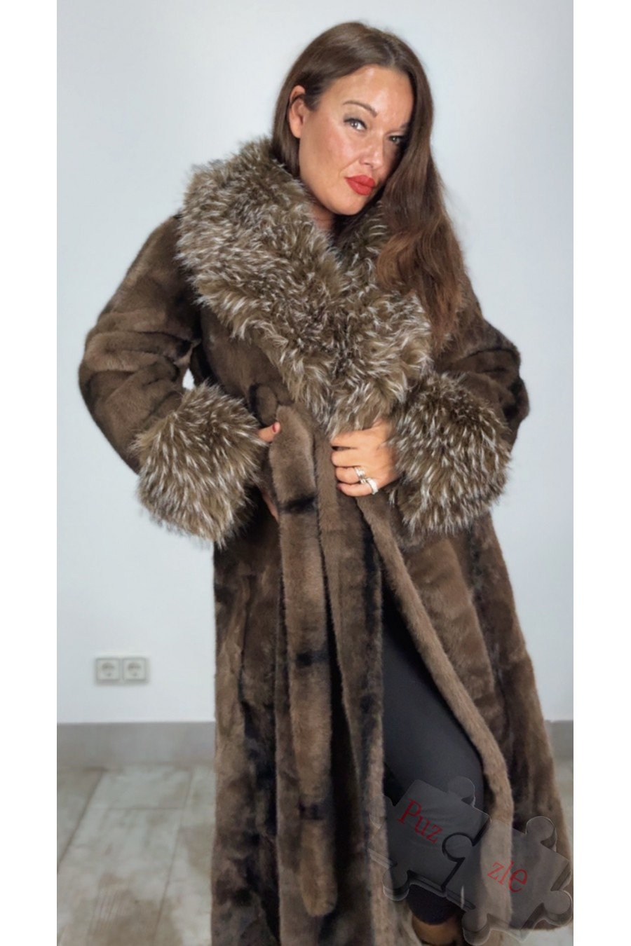 Abrigo de pelo sintético en tono marrón , disponible en talla única