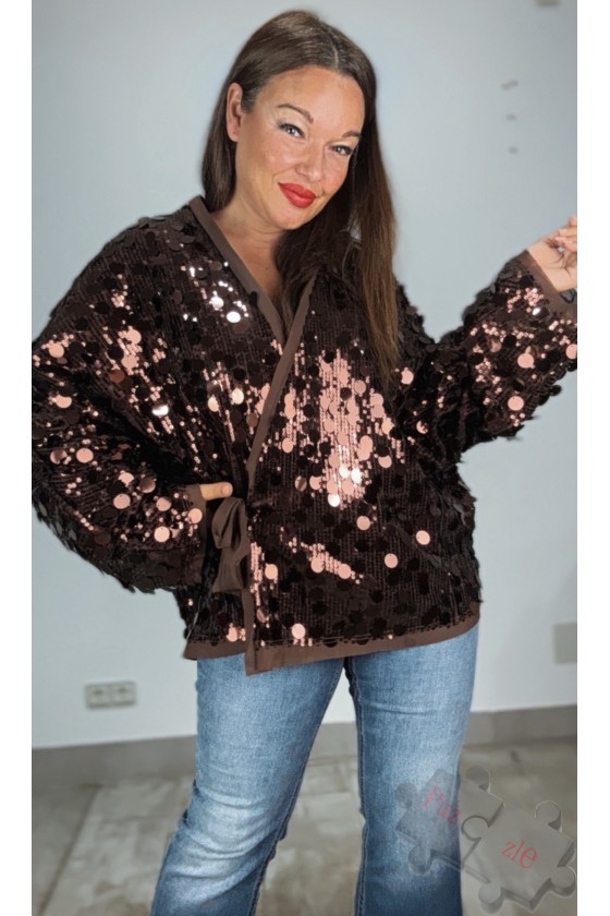 Camisa cruzada de lentejuelas chocolate , disponible en talla única