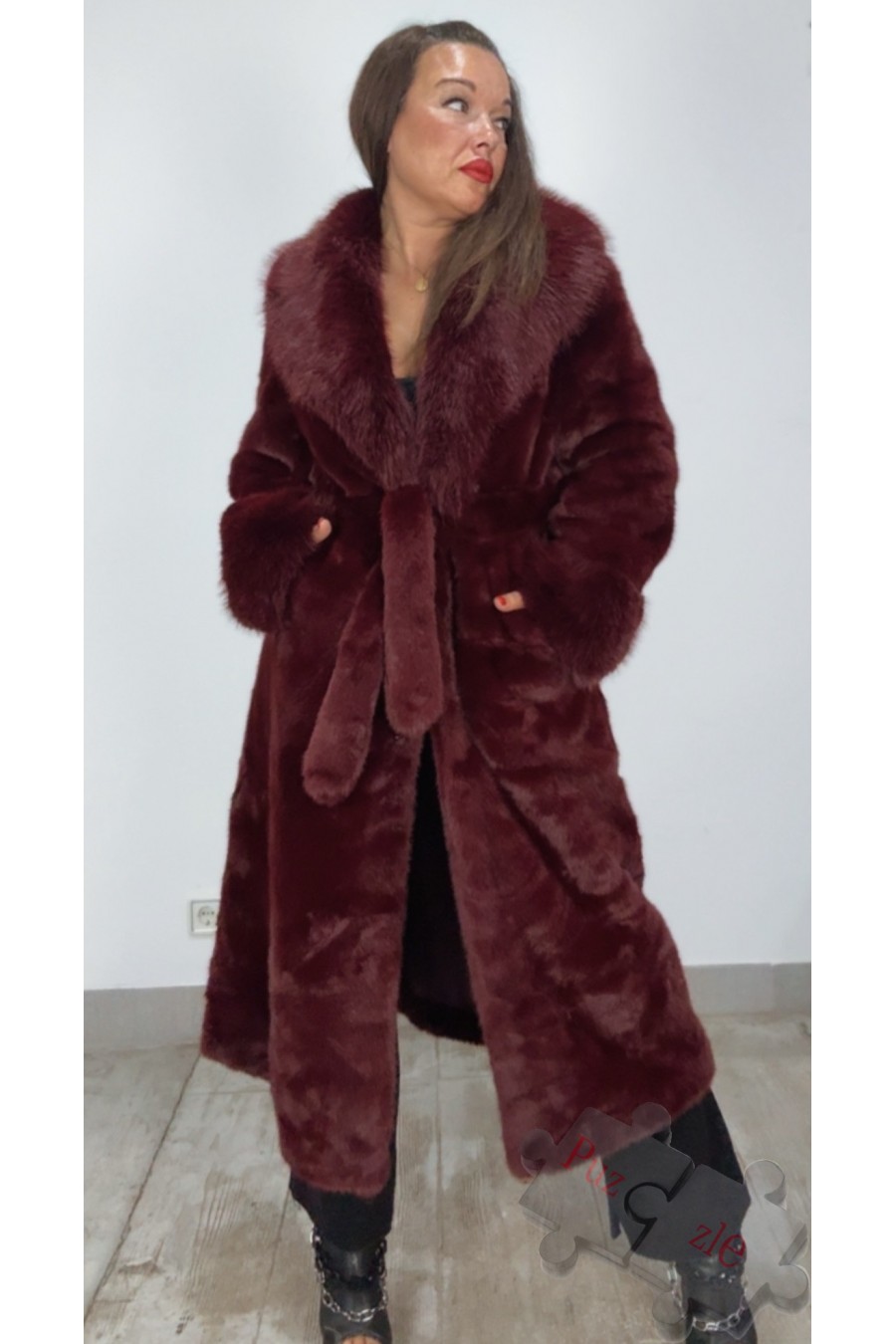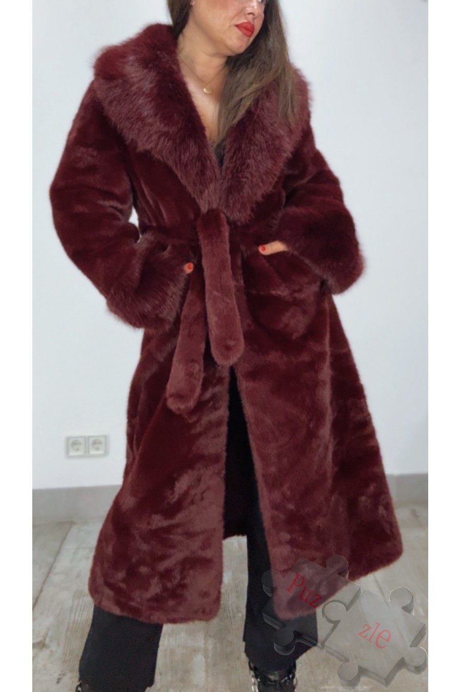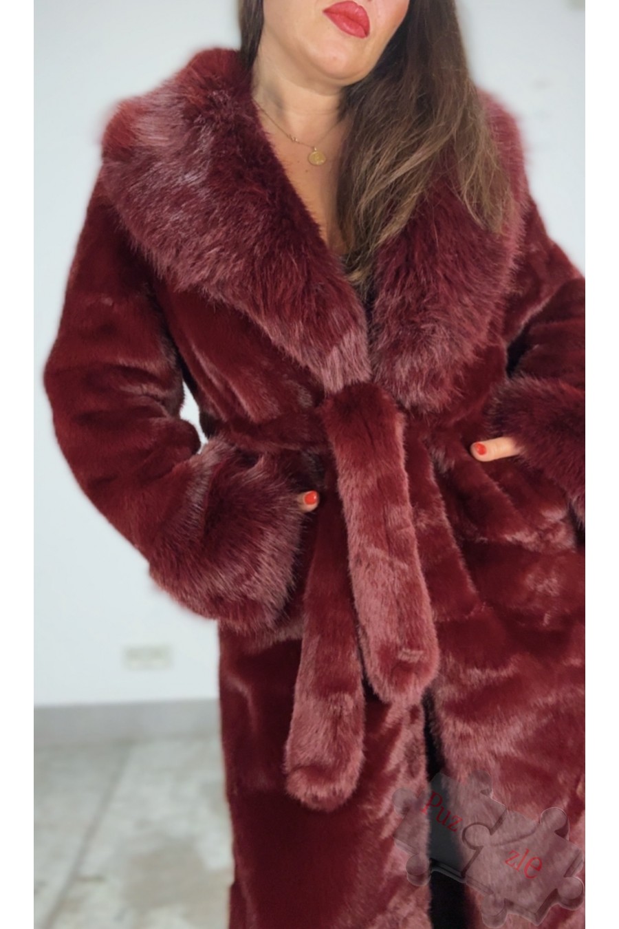 Abrigo de pelo en tono burdeos , disponible en talla única