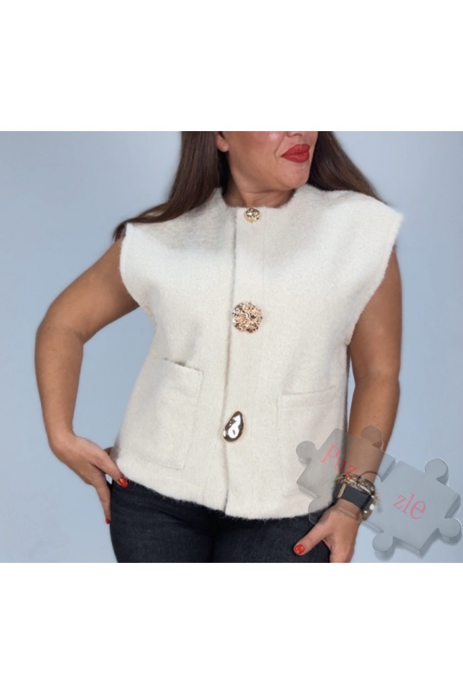Chaleco de lana en tono crudo con botones joya , disponible en talla única