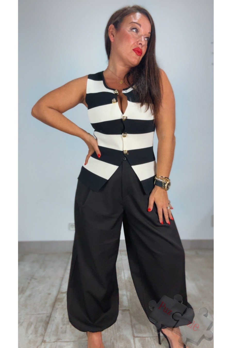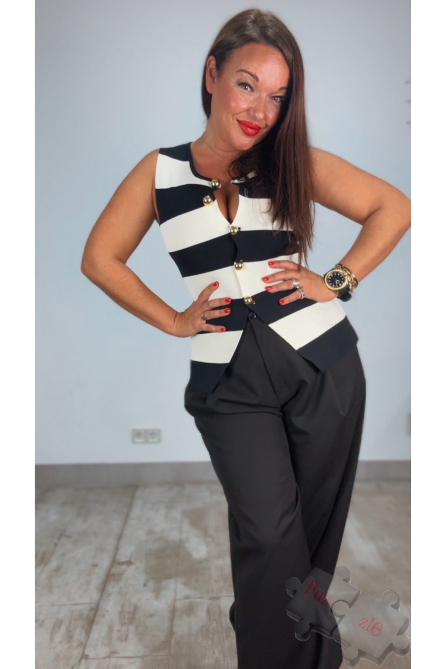 Chaleco de punto en rayas blanco y negro , disponible en talla única