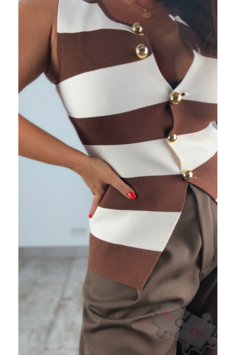 Chaleco de punto en rayas en chocolate , disponible en talla única