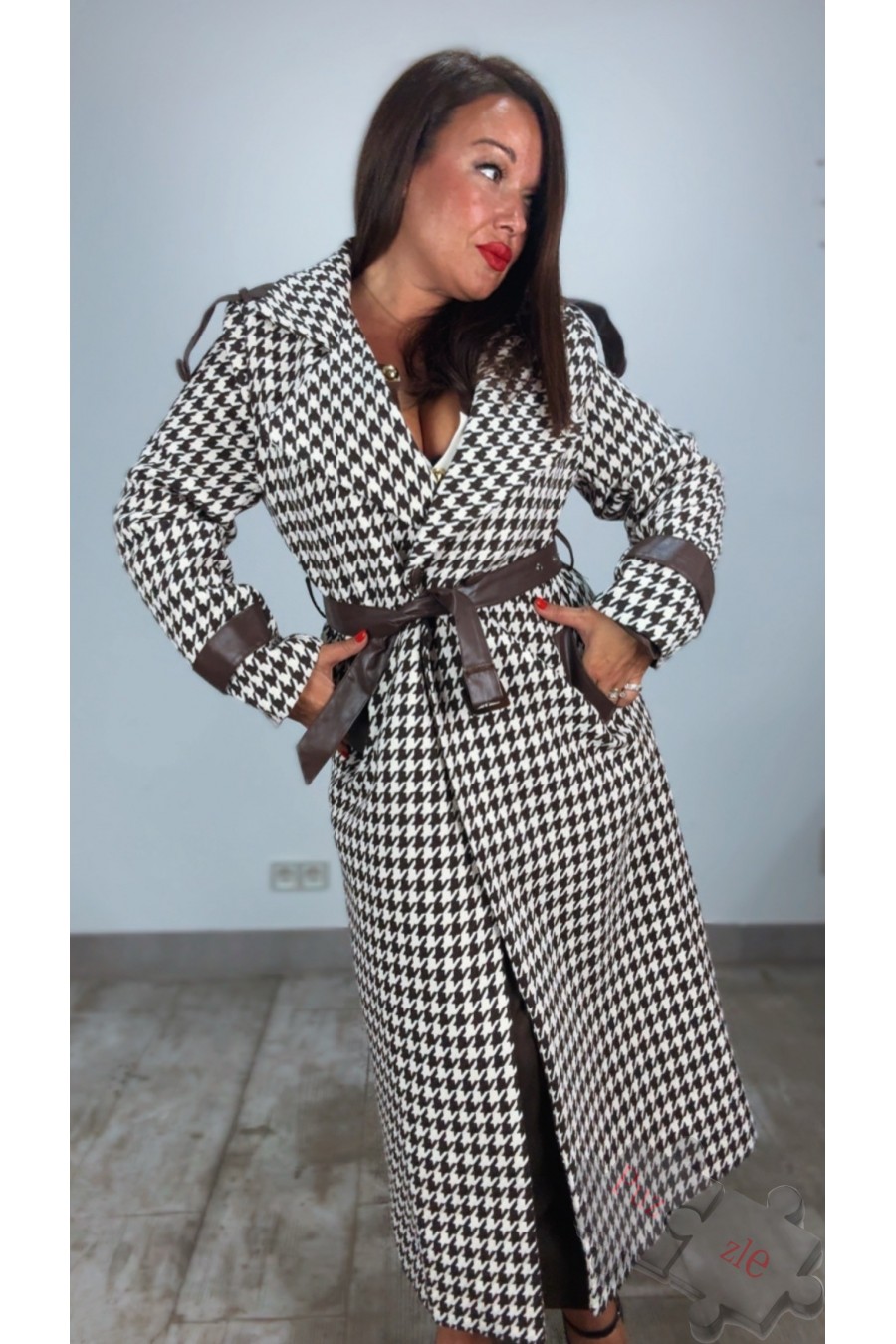 Abrigo en cuadro vichy en tono marrón , disponible en dos tallas