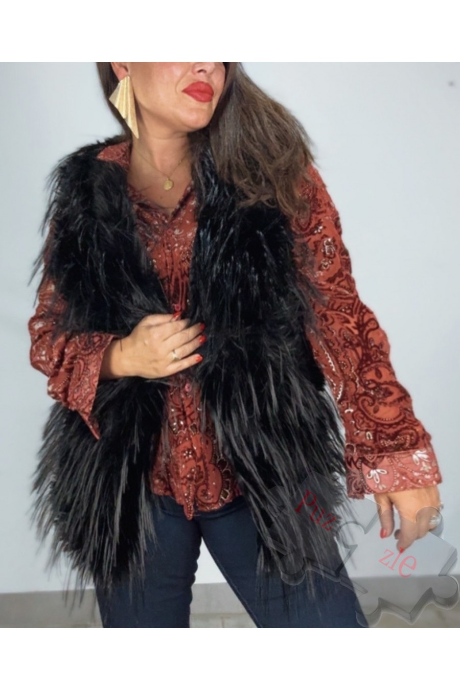 Camisa en guipur con bordado en polipiel , disponible en tres tallas