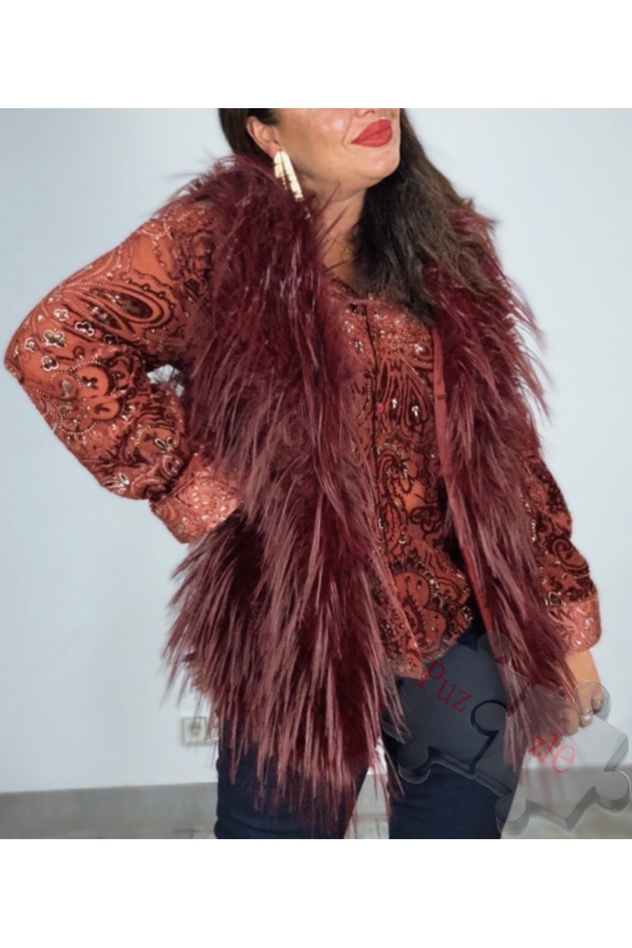 Abrigo de pelo sintético en tono chocolate, disponible en talla única