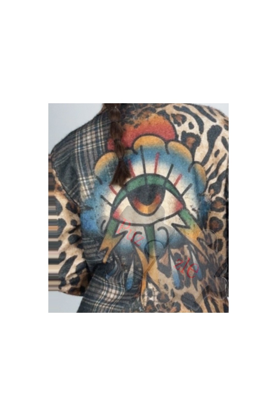 Chaqueta tejana en marrón estampada , disponible en tallas