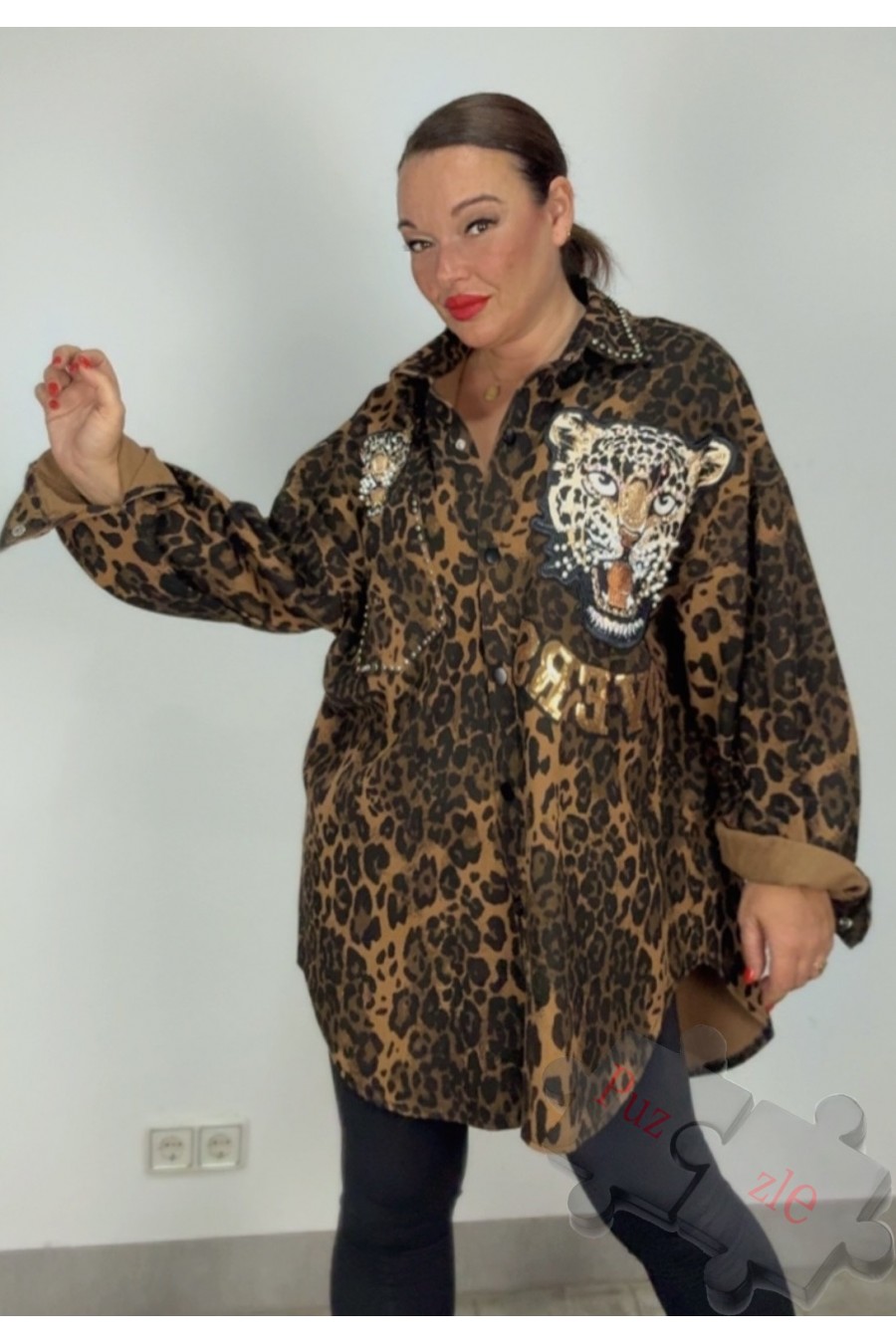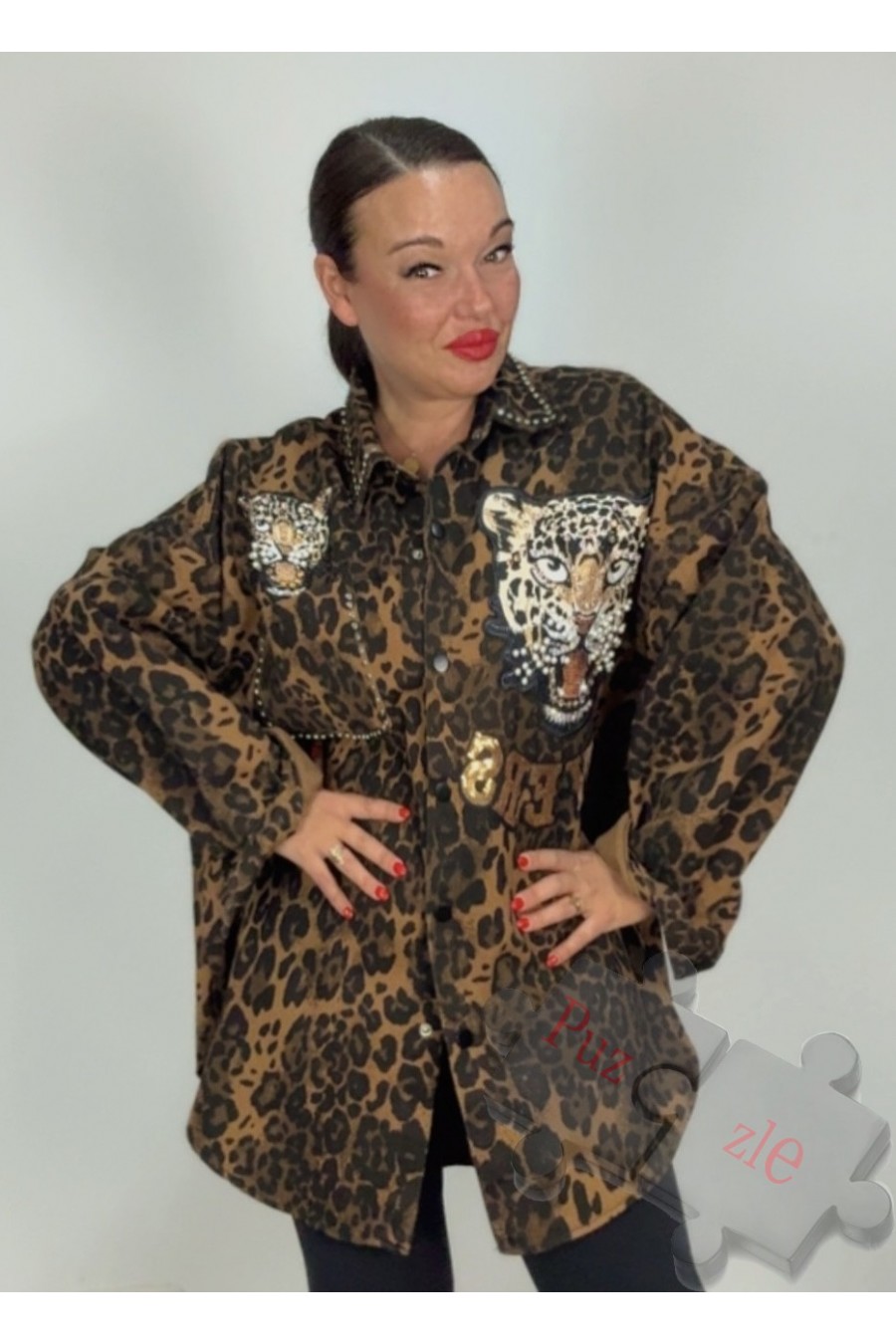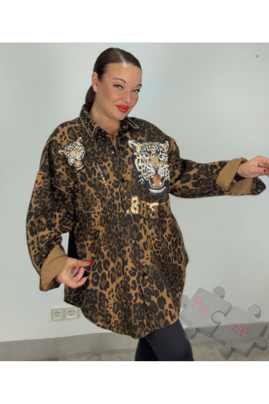 Sobrecamisa de leopardo con detalles de strass y lentejuelas, disponible en talla única