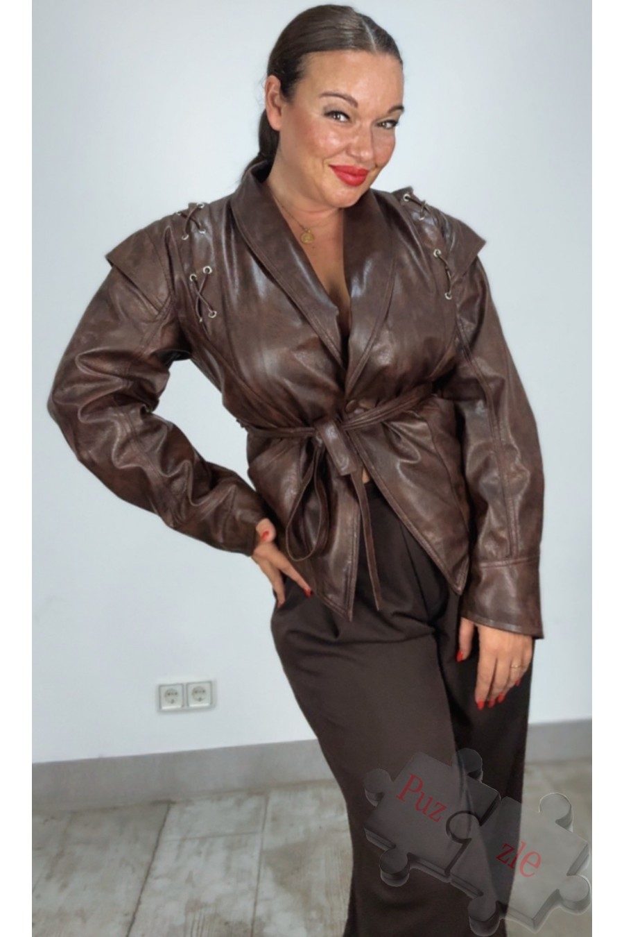 Chaqueta de polipiel en tono marrón , disponible en dos tallas