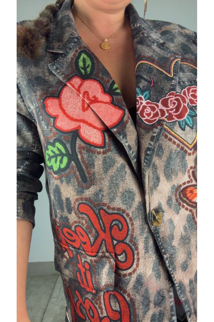 Chaqueta estampada , no lleva strass es todo estampado , disponible en talla única