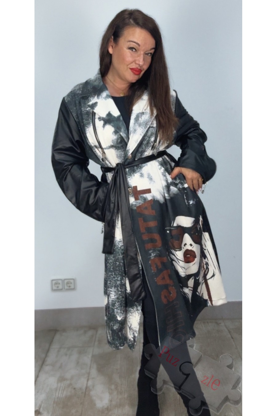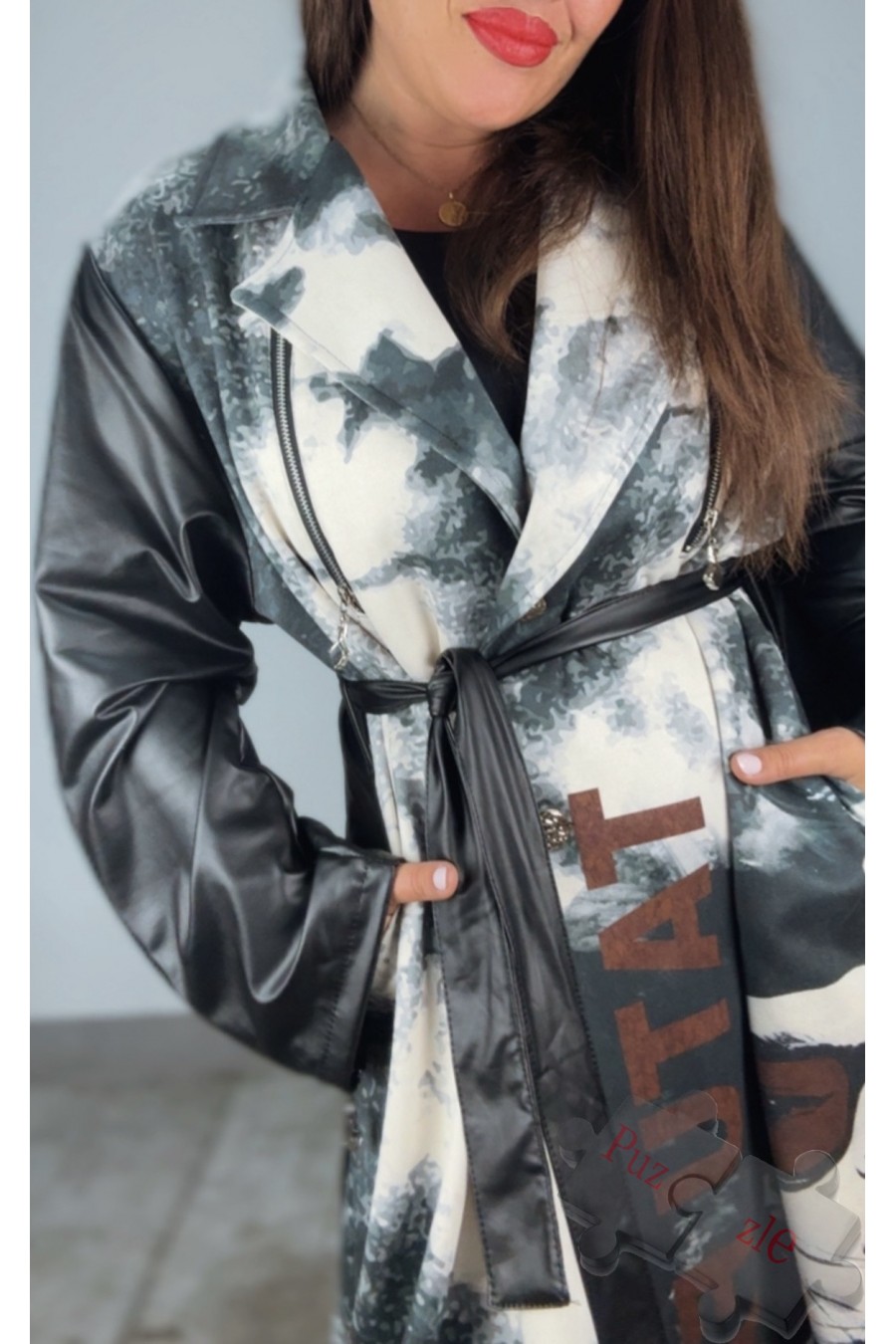 Gabardina estampada de antelina por la parte delantera y polipiel la trasera , disponible en talla única