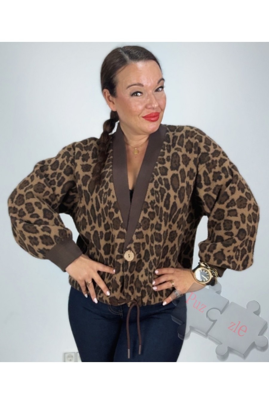 Rebecon de lana en leopardo con ajustable en cintura , disponible en talla única