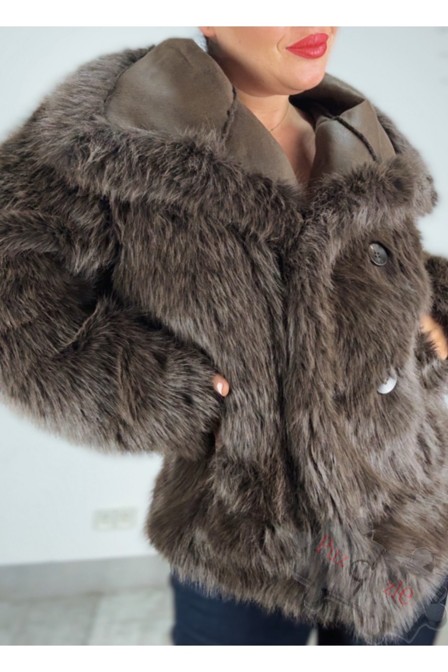 Abrigo de pelo sintético en tono chocolate, disponible en talla única