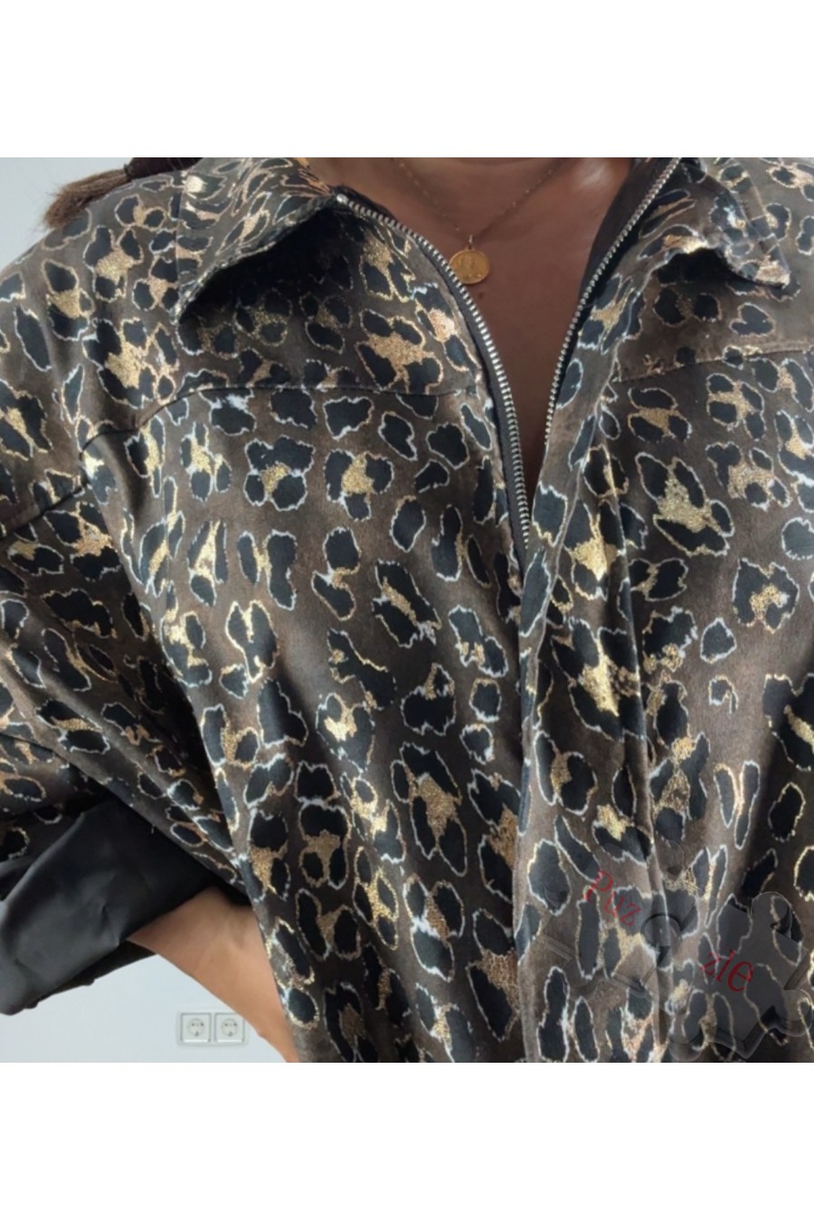Bomber de antelina en tono marrón con dibujo animals en dorado , disponible en talla única