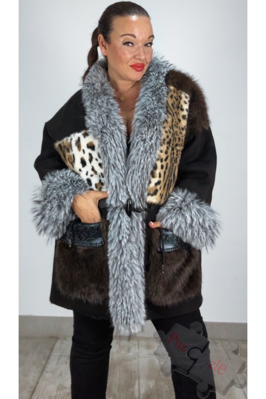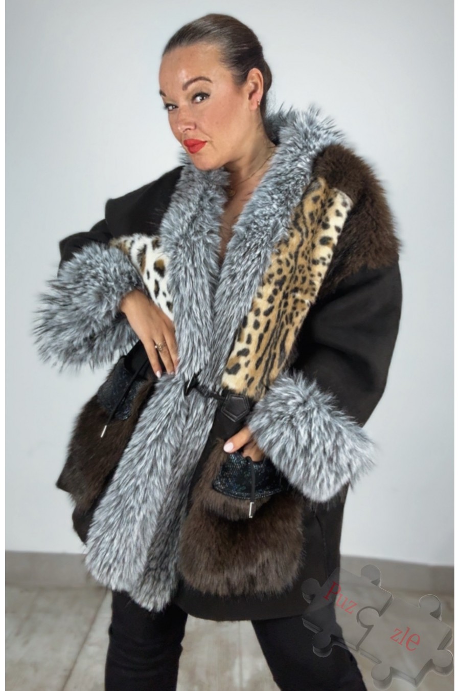 Abrigo de pelo oversize , en tono negro y marrón , disponible en talla única