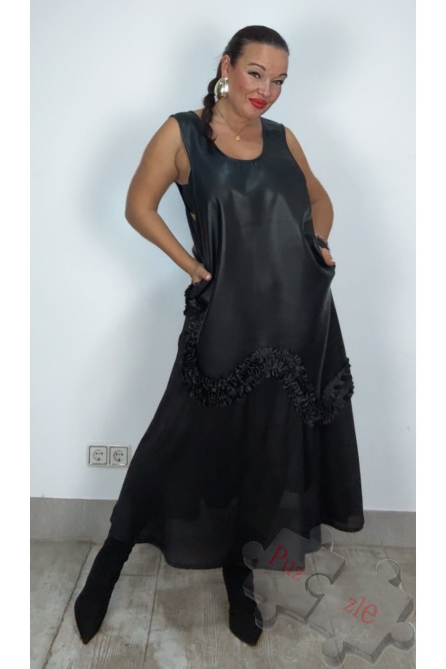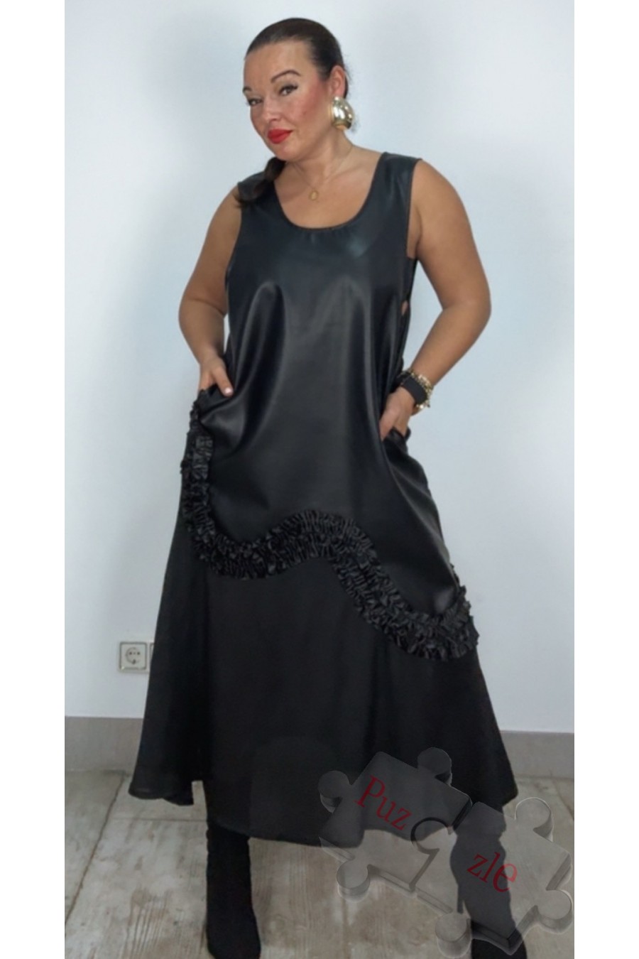 Vestido de polipiel con volante de gasa , disponible en talla única