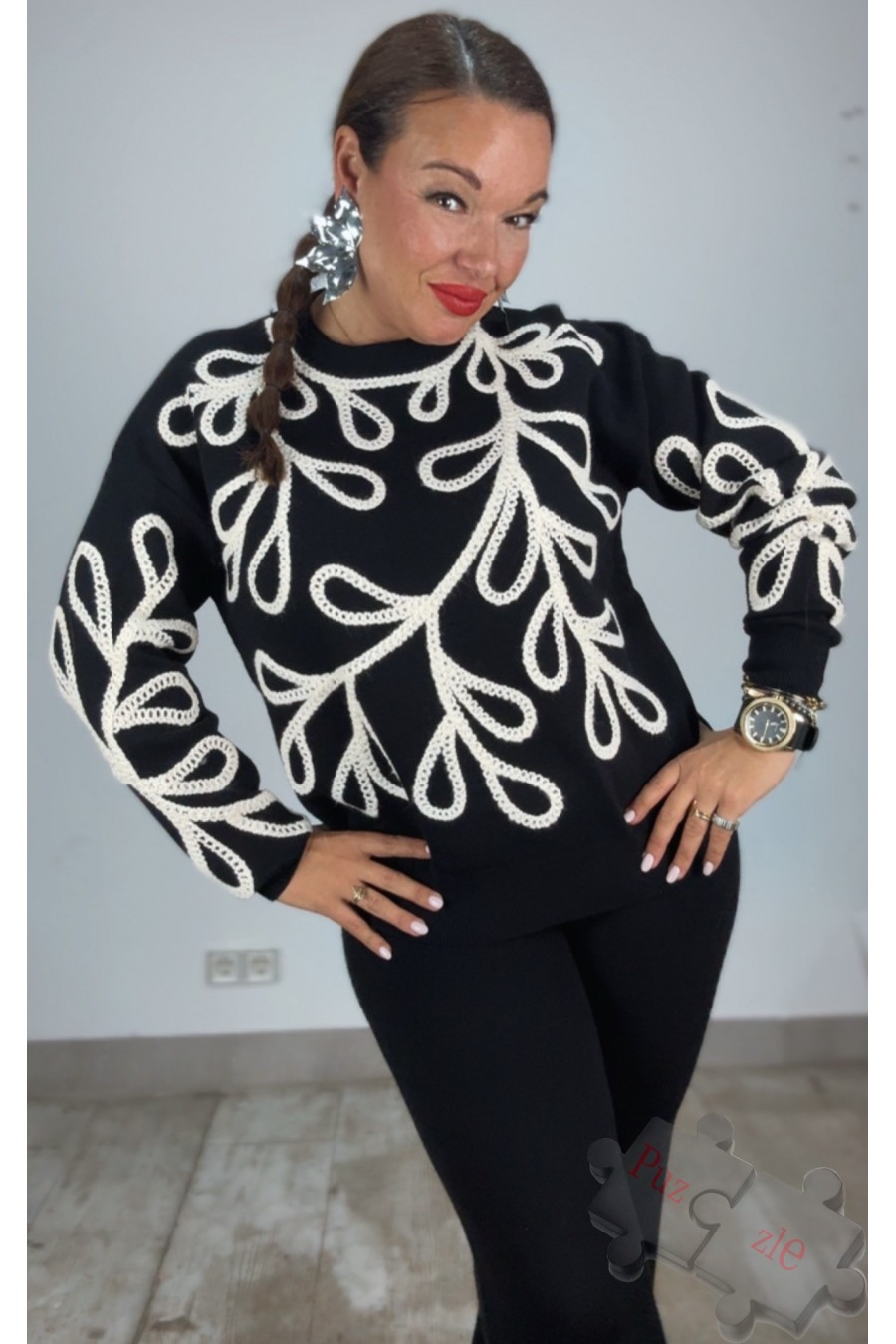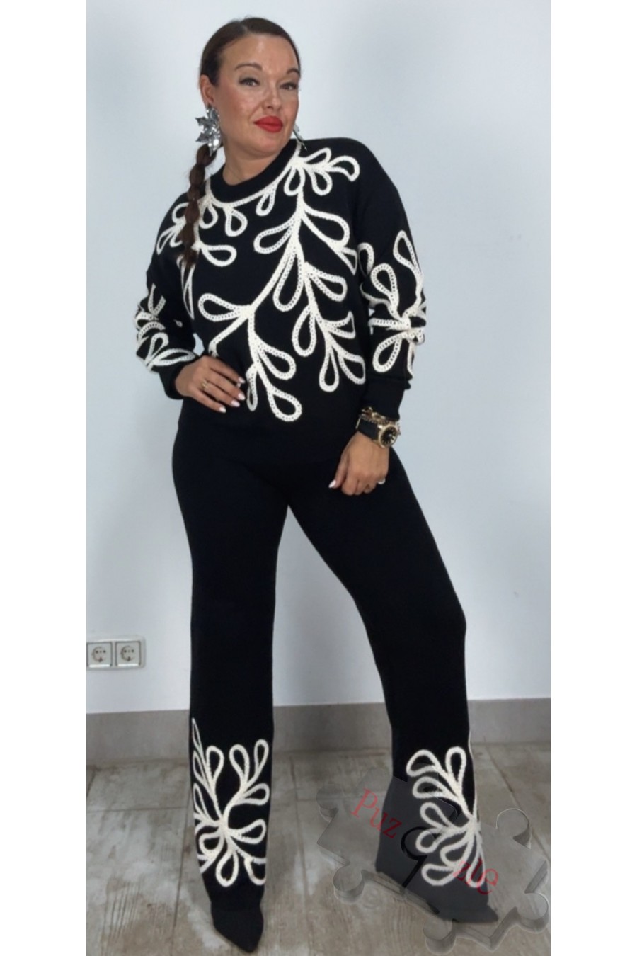 Conjunto de punto en negro con bordados en blanco , disponible en talla única