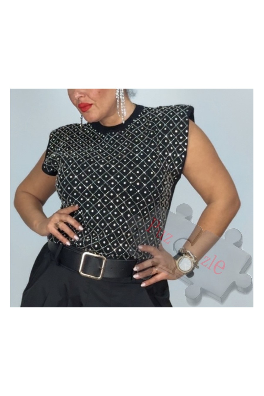 Chaleco de crepé en tono negro con volantes de tul , disponible en talla única