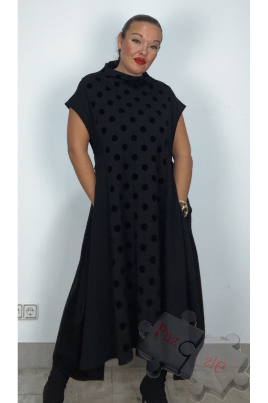 Vestido de punto milano con lunares en terciopelo , disponible en talla única