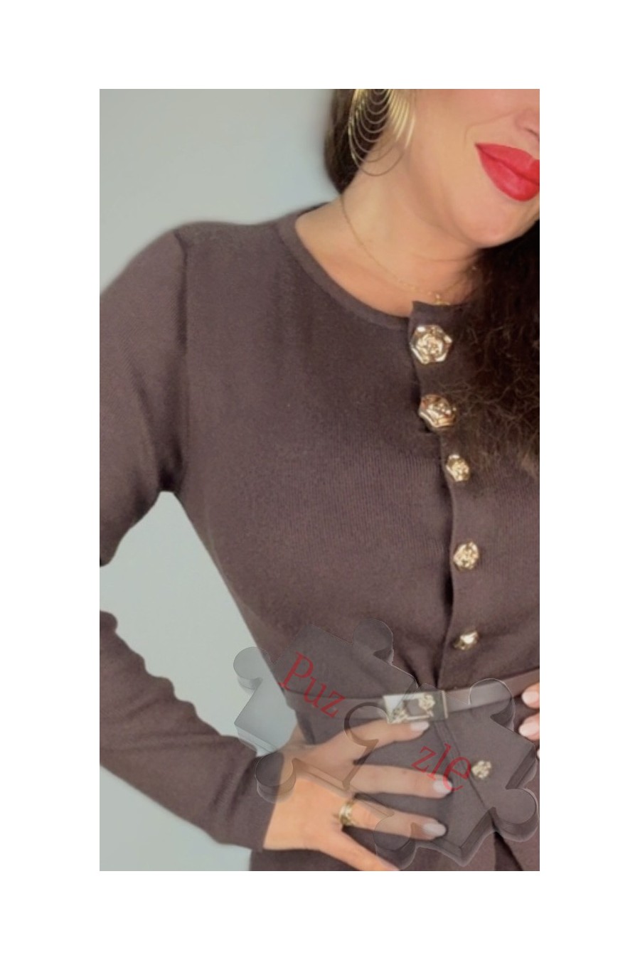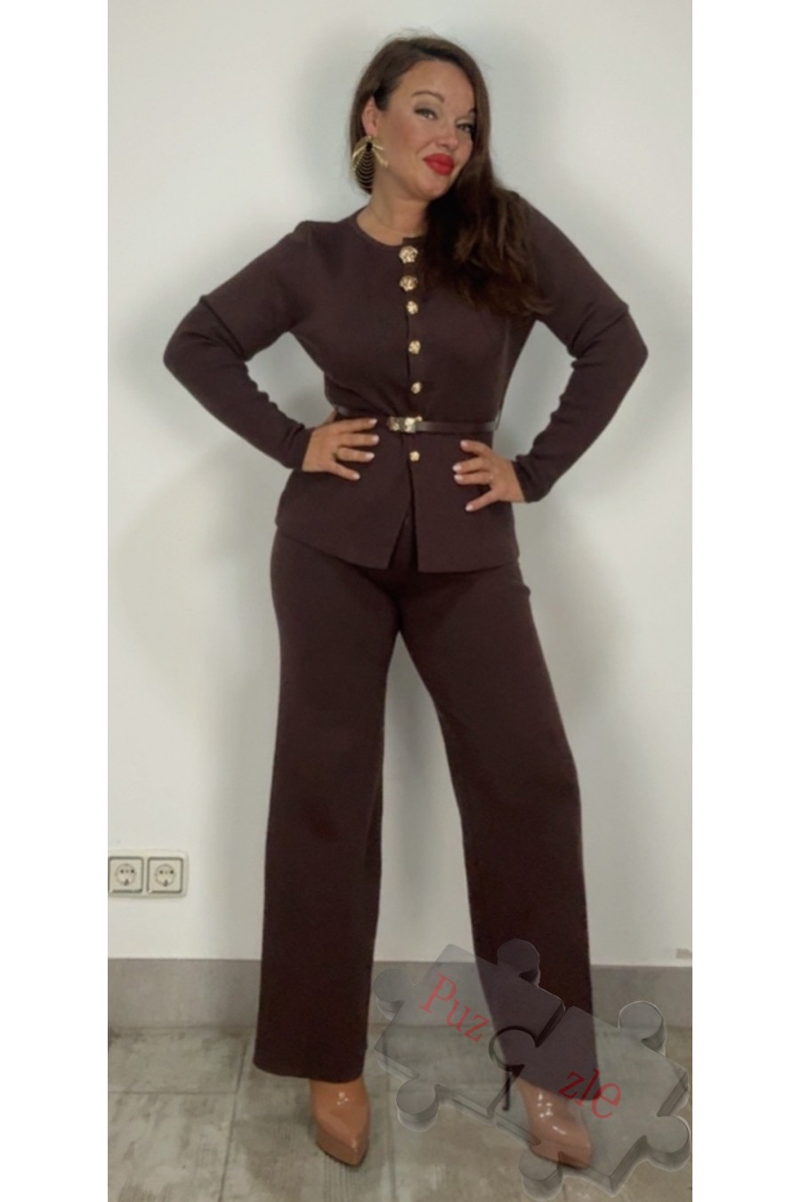 Conjunto de punto en tono marrón con botones dorados , disponible en talla única